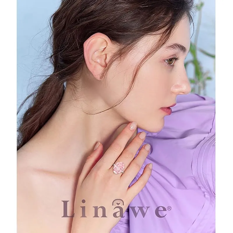 [Linawe] ピンク 指輪 フリーサイズ、シルバーリング レディース、モアサナイト 人工ダイヤモンド ジルコニア 6月 10月 誕生石 指環、プラチナ ゆびわ アクセサリー ジュエリー 0