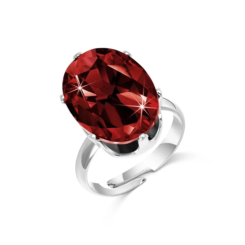 [Linawe] ガーネット レッド シルバーリング レディース、モアサナイト 人工ダイヤモンド 指輪 フリーサイズ、プラチナ ジルコニア 1月 誕生石 指環、ゆびわ アクセサリー ジュエリー 1