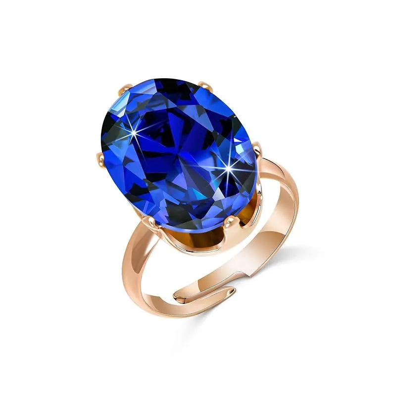 [Linawe] サファイア ブルー ピンクゴールド 指輪 フリーサイズ、モアサナイト リング レディース、人工ダイヤモンド ジルコニア 9月 誕生石 指環 ゆびわ、アクセサリー ジュエリー 0