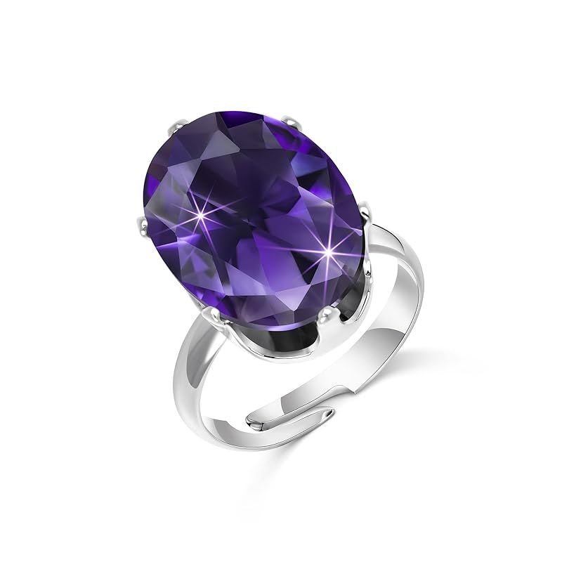 [Linawe] シルバーリング レディース、アメジスト パープル 指輪 フリーサイズ、プラチナ 指環 アクセサリー ジュエリー、モアッサナイト 人工ダイヤモンド ジルコニア 2月 誕生石 ゆびわ 1
