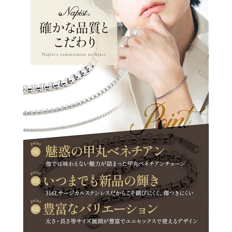 Napist ブレスレット メンズ レディース [ 金属アレルギー対応 ] アクセサリー サージカルステンレス 甲丸ベネチアン チェーン シルバー 2mm-18cm 0