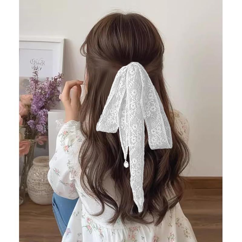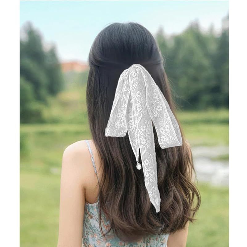 FASELE レースヘアバンド チョーカー ヘッドバンド レース ヘアタイ リボン ヘアタイ 多用途 ヘアアクセサリー ネクタイ ヘアバンド 飾り小物 レースベルト 帽子飾り ヘッドスカーフ スカーフ 1