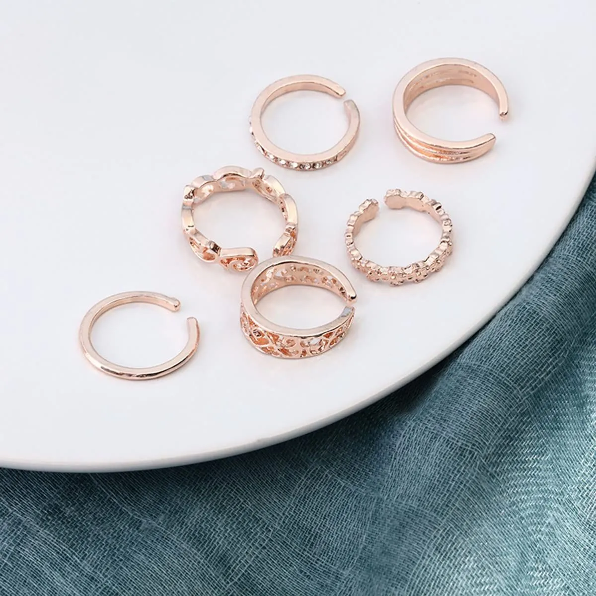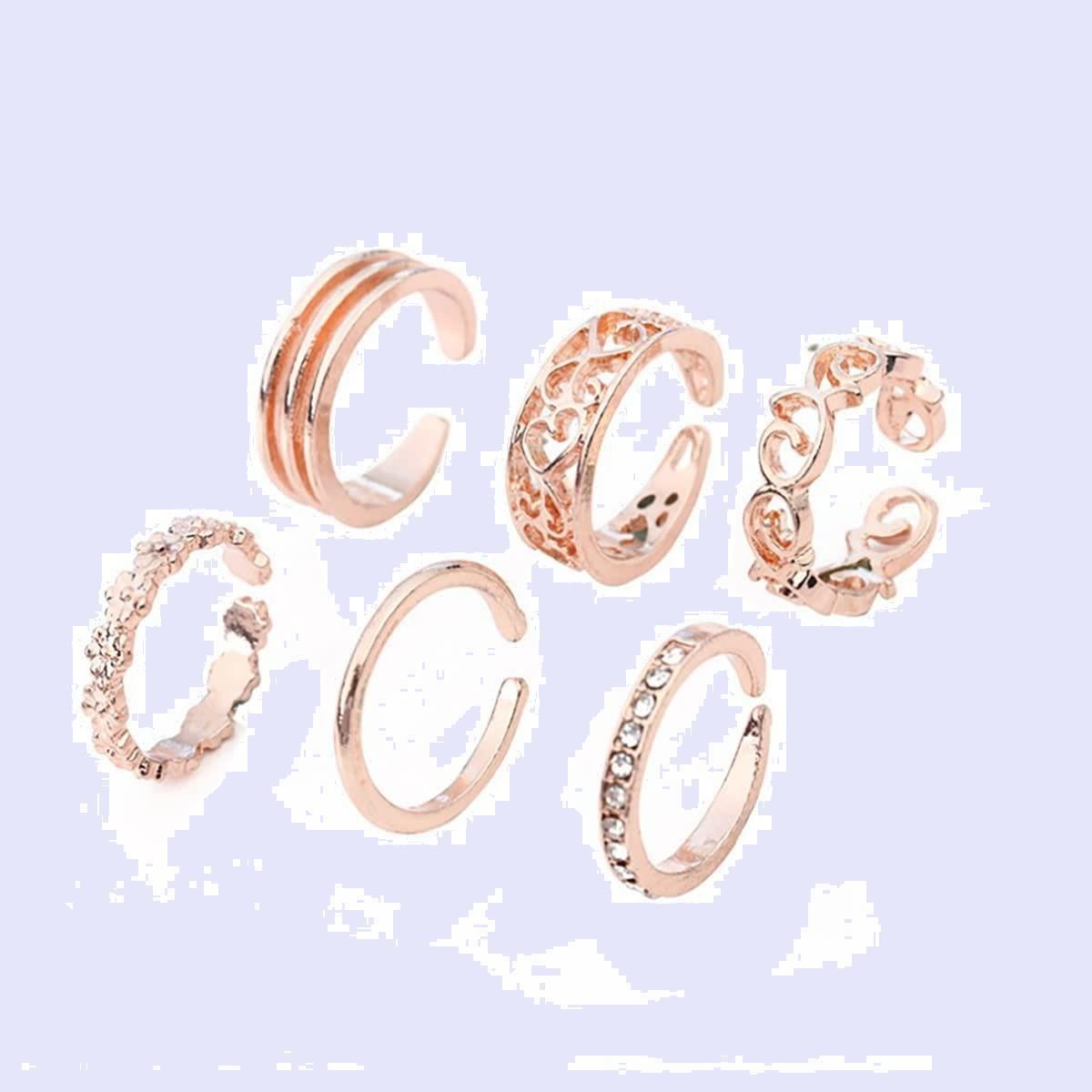 ユニセックス フリーサイズ カップル アクセサリー レディース 指輪プレゼント シルバー メンズ 合金 連リング 人気 ファッションリング調節可能 おしゃれ 人気 セット 6点セット指輪 (A)