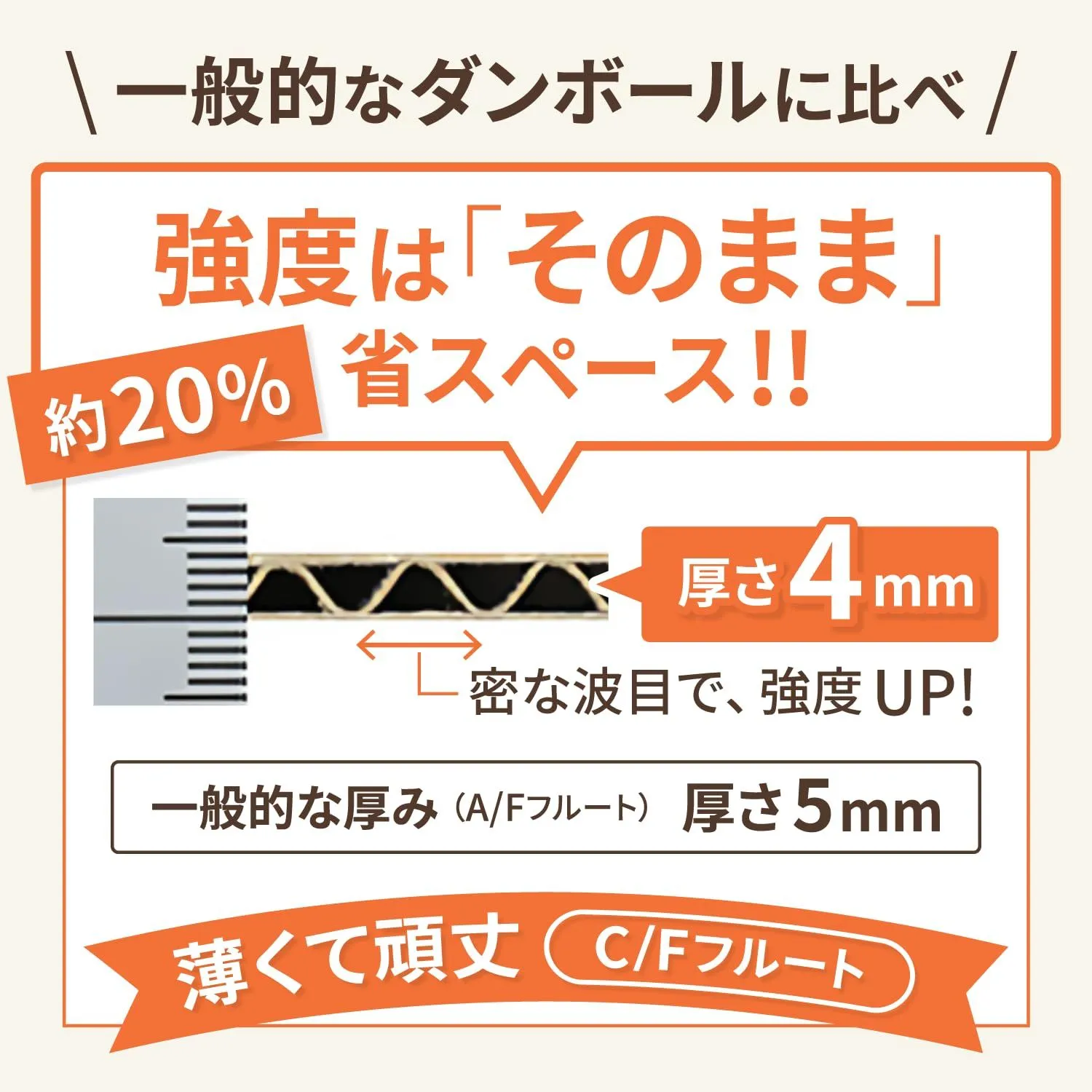 【持ち運びしやすい取っ手付き】箱の左右に手穴加工を施しております。たくさん荷物を入れても、持ち運べるので便利です。発送時に手穴部分が気になる方は、手穴の切り込み部分にテープを貼る形でお使いください。 内寸法:450×450×450mm / 外寸法:458×458×466m / 3辺外寸合計:139cm / 重量:1250g /フルート・材質:C/F(4mm)・K6 / 色:茶 / 箱形式:A式(みかん箱)
