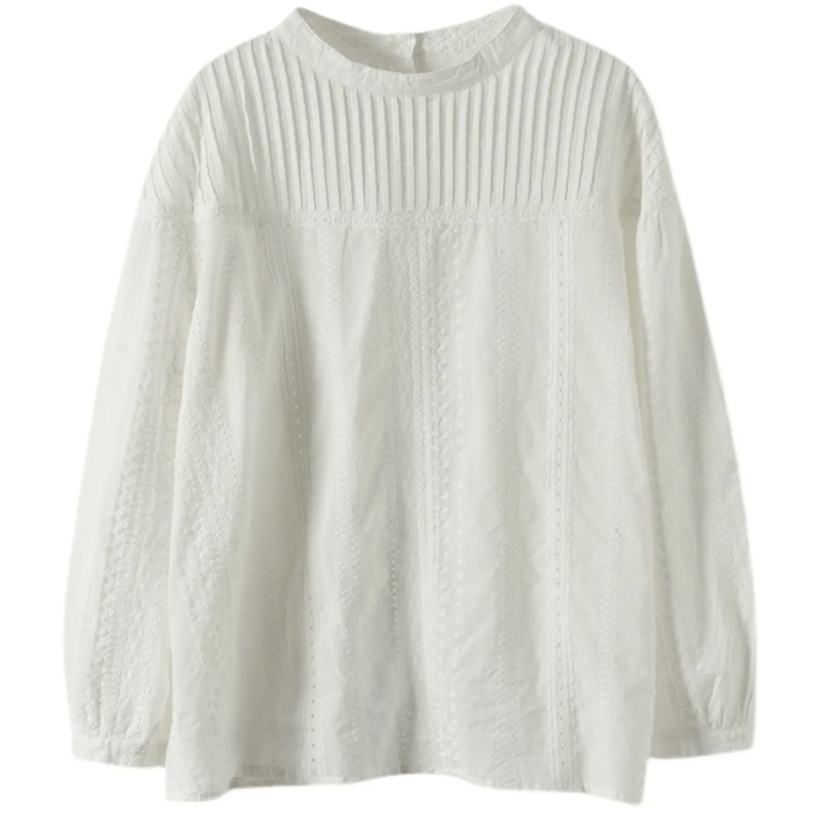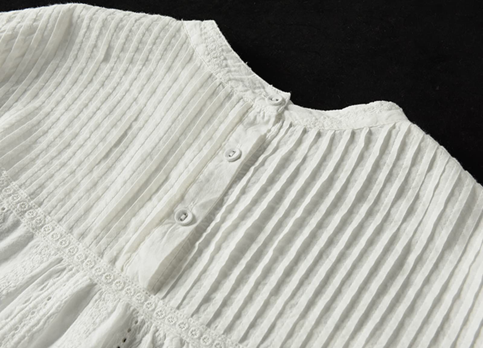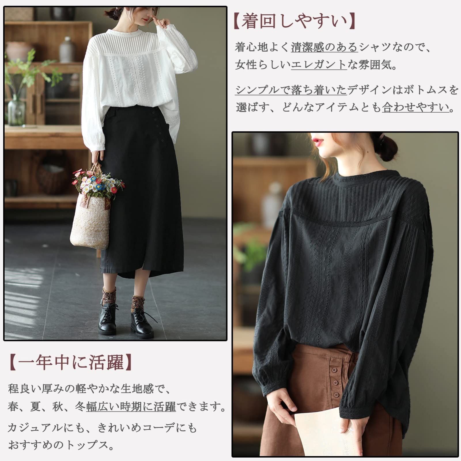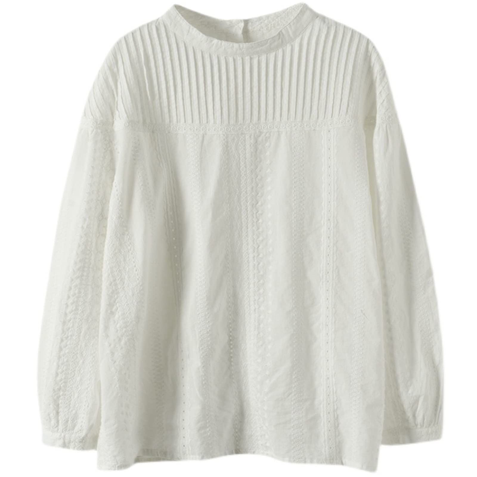 [YY-Natuhi] ブラウス シャツ トップス レディース レース ピンタック 綿100% 長袖 カジュアル おしゃれ きれいめ ゆったり デート オフィス 通勤 普段着 部屋着 春 夏 秋 Free Size