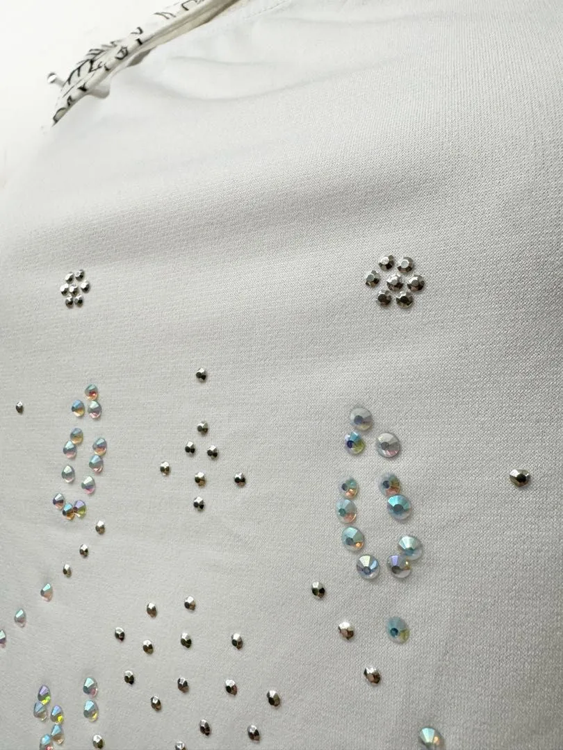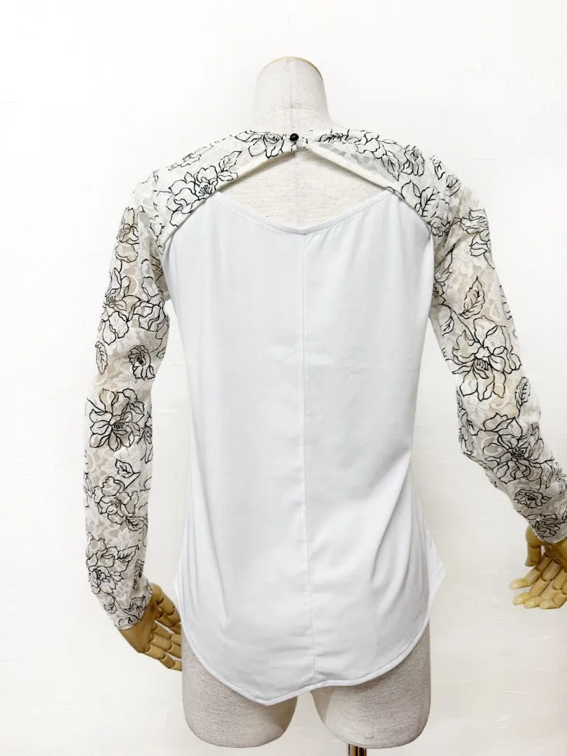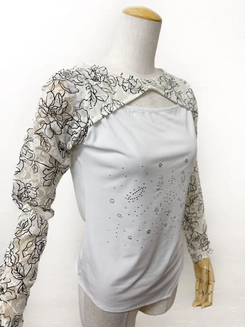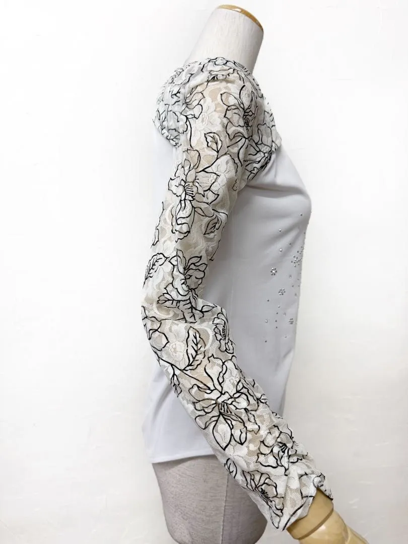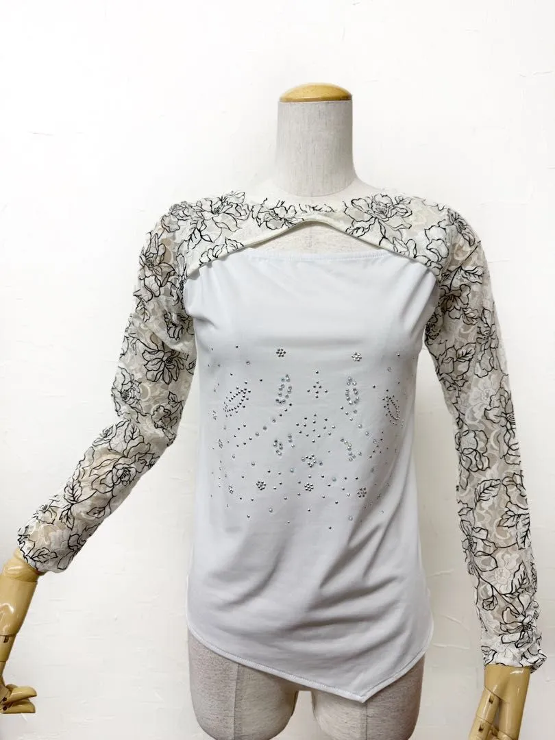 【エレガント】新品 社交ダンストップス 白 花柄レース ラインストーンb322