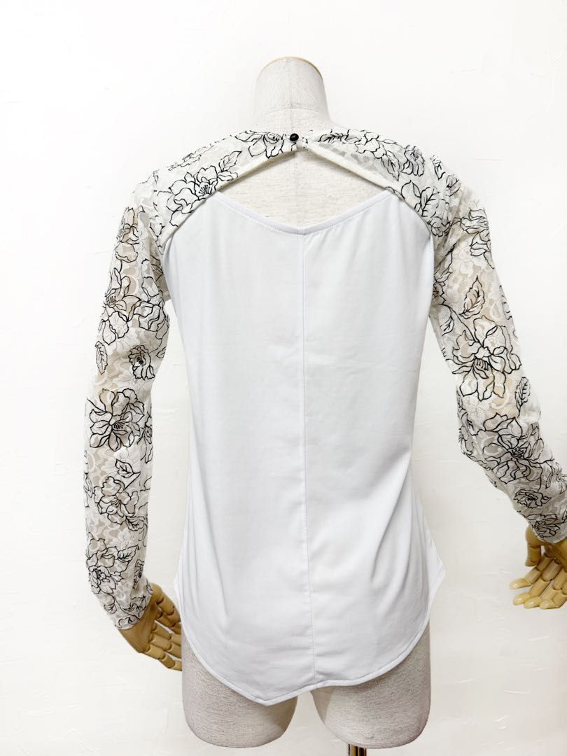 繊細な花柄レースを肩から袖にかけて贅沢にあしらった、