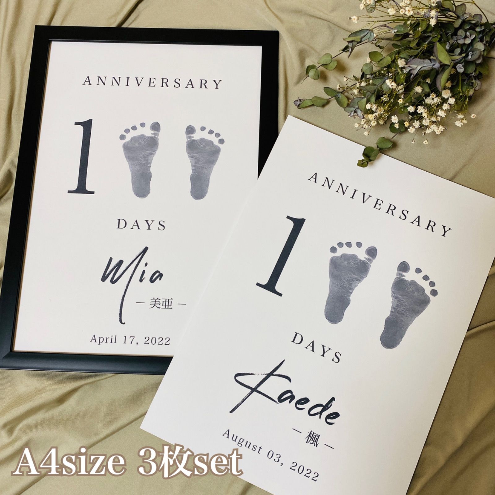 3枚セット♡100日記念 手形足形ポスター 100日祝い お食い初め 手形アート