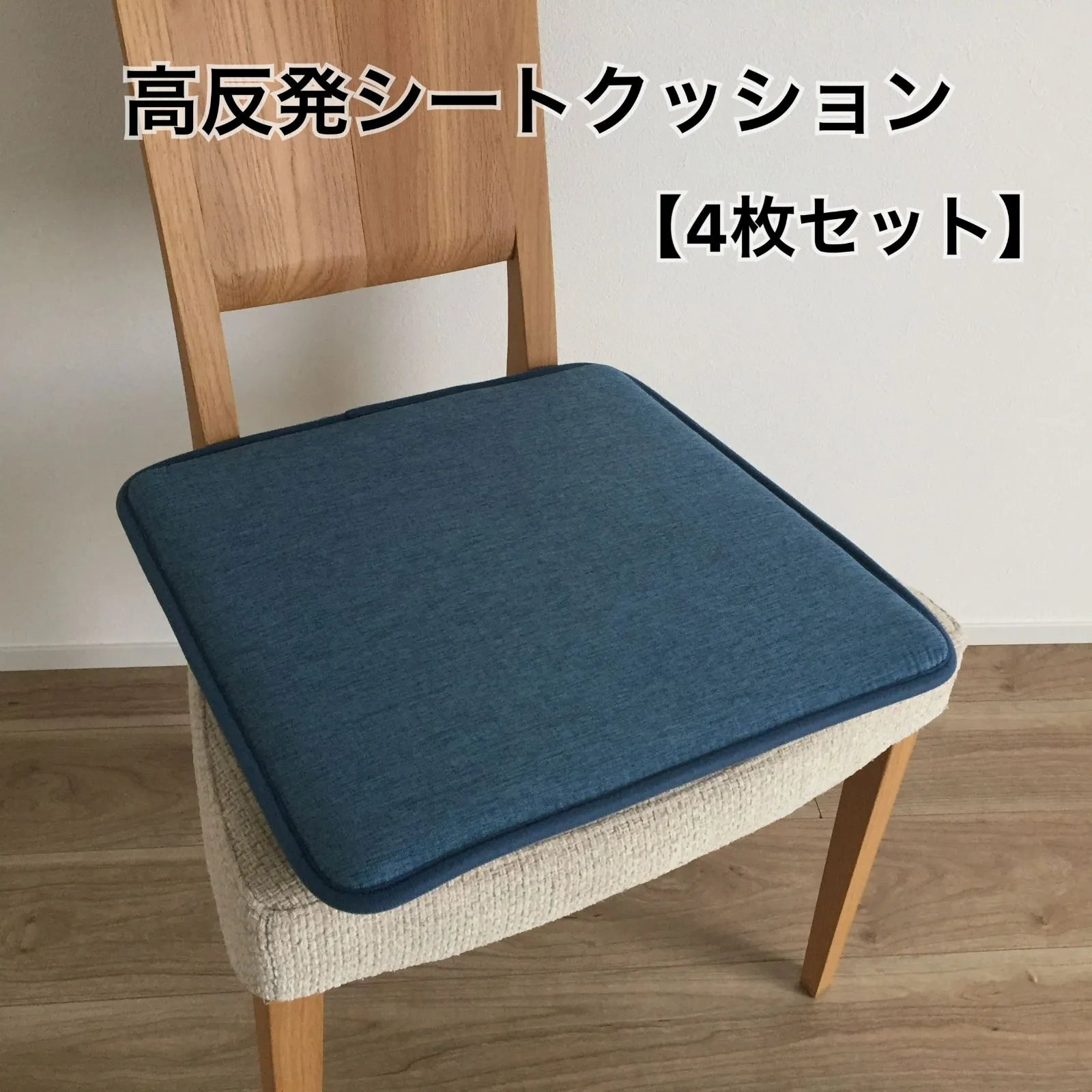 【4枚組】シートクッション 車 高反発 椅子用 腰痛対策 フロアクッション デスクワーク用 車いす 座布団 運転 フィス チェア 約43×43cm 厚み3.5cm ブルー すべり止め付き