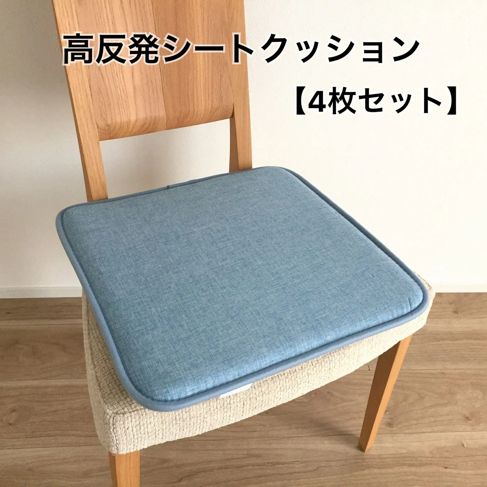 【4枚組】シートクッション 車 高反発 椅子用 腰痛対策 フロアクッション デスクワーク用 車いす 座布団 運転 フィス チェア 約43×43cm 厚み3.5cm 水色 すべり止め付き