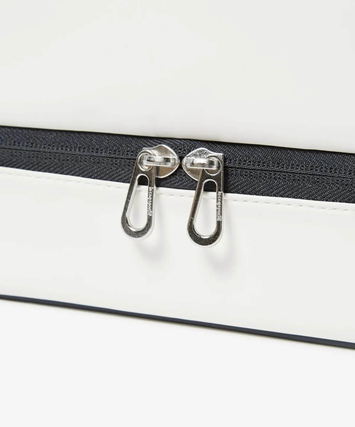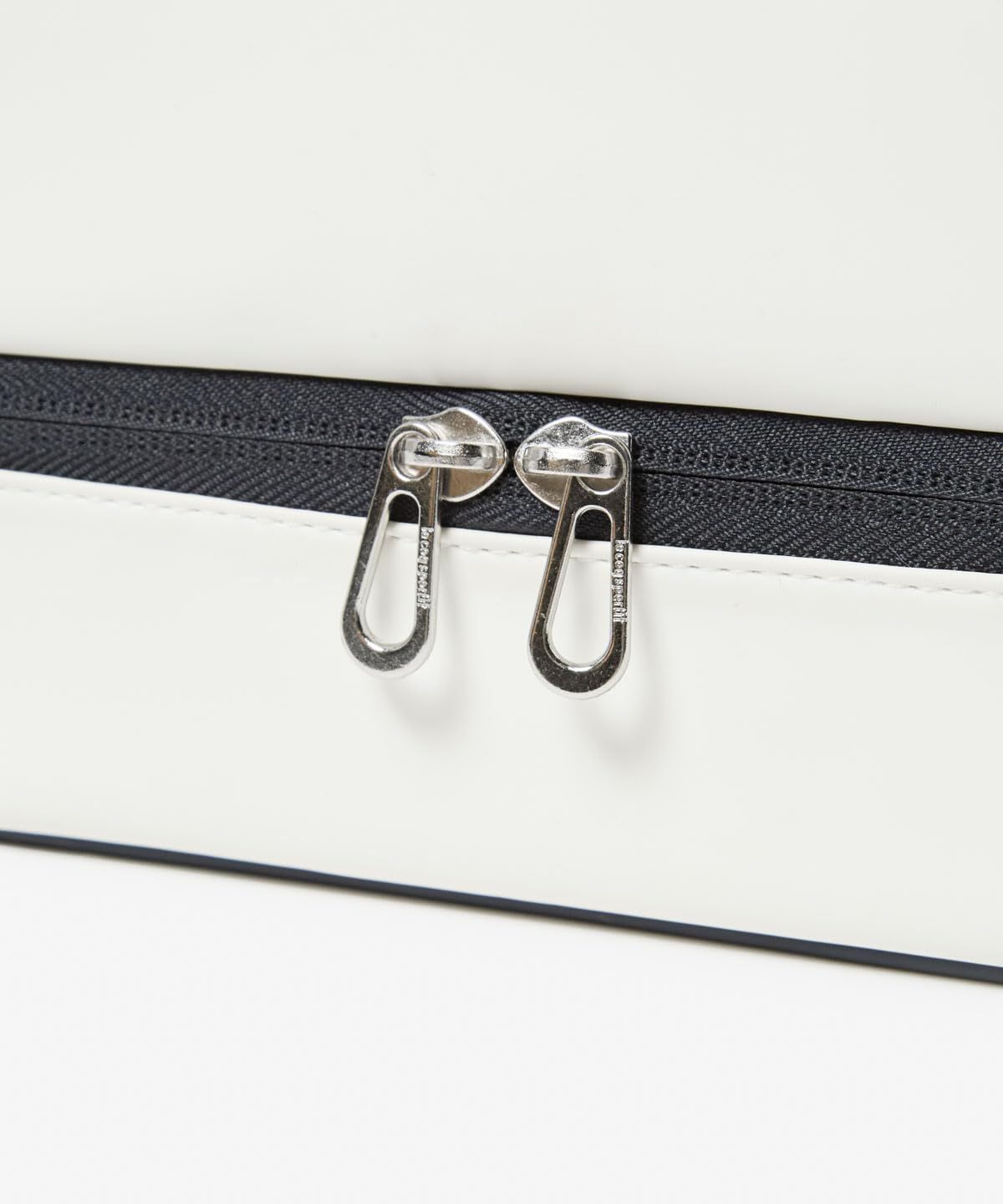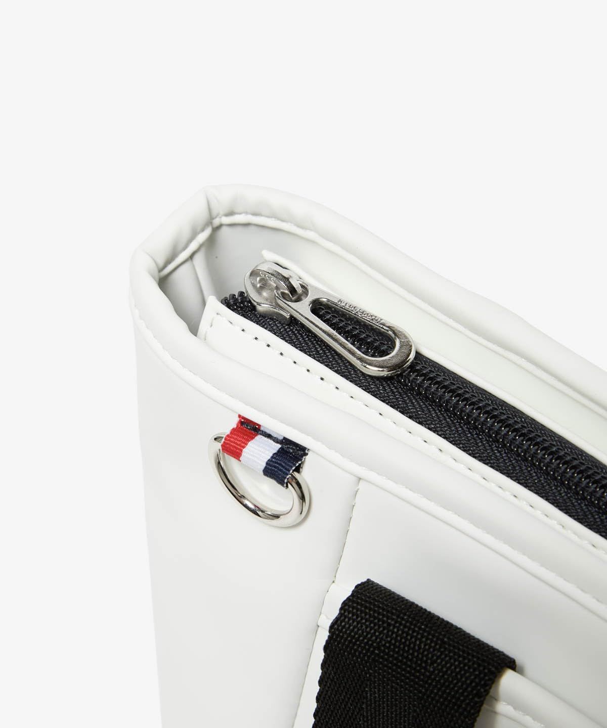 下部収納スペースに保冷機能裏地を使った二層式カートポーチ。上下二層に区分けしており、上部はラウンド中の小物入れ、下部は保冷機能裏地で500ml2本程度のペットボトルやクーリングアイテムが収納可能。大きく開く開口部分は中身も見やすく、内容物の出し入れも容易。