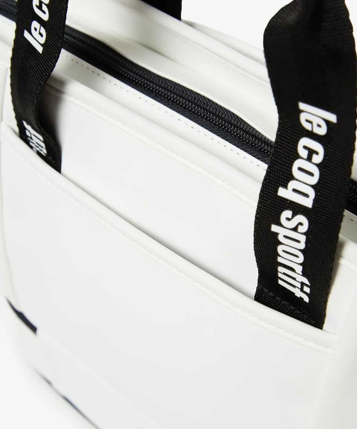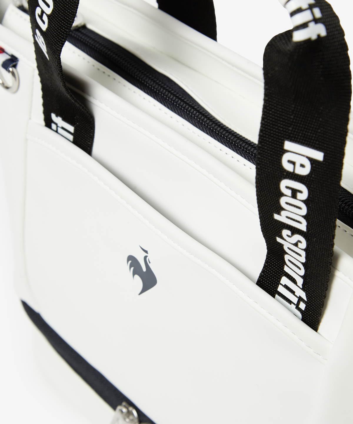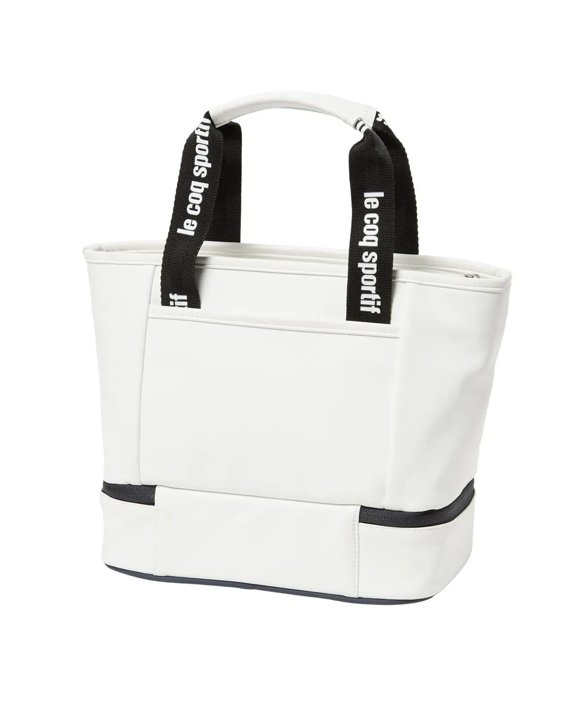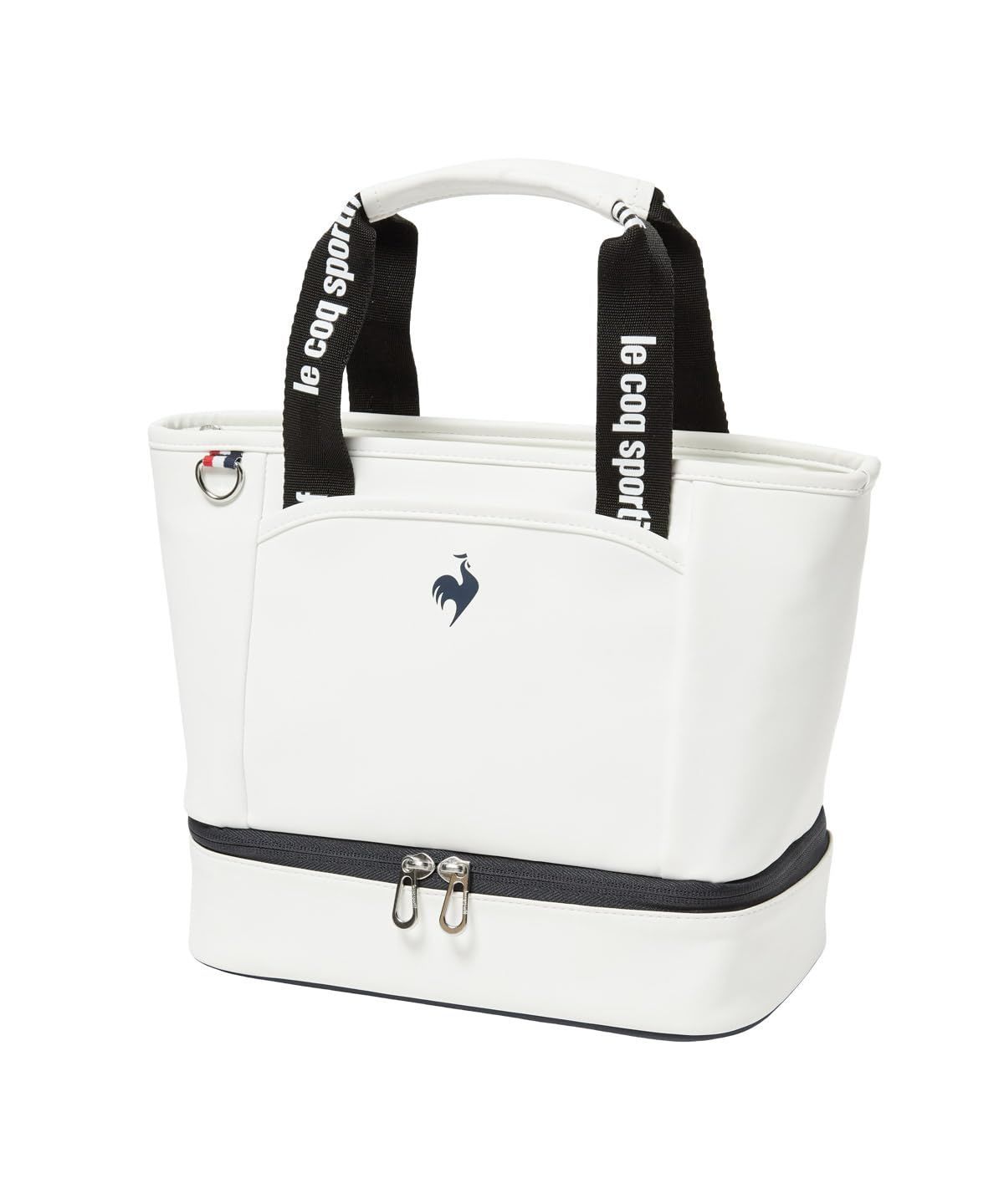 部はラウンド中の小物入れ、下部は保冷機能裏地で500ml2本程度のペットボトルやクーリングアイテムが収納可能