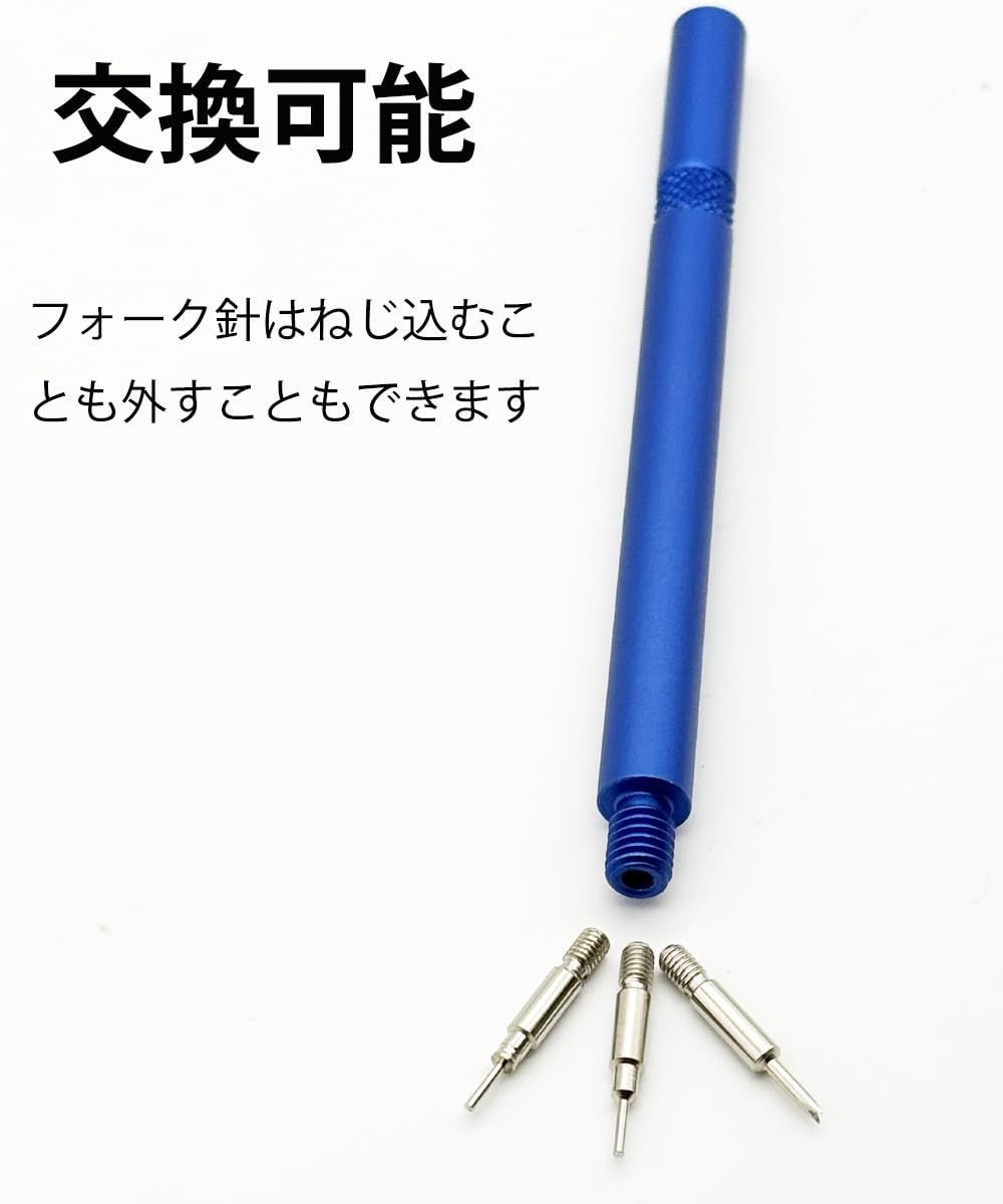 バネ棒外し ばね棒外し 替えバネ棒用工具 時計用工具 腕時計時計バンド ベルト 交換 工具 バネ棒外し、替えの針が3本付属しています、ステンレススチールバンド修理工具(キャップ付(ブルー)