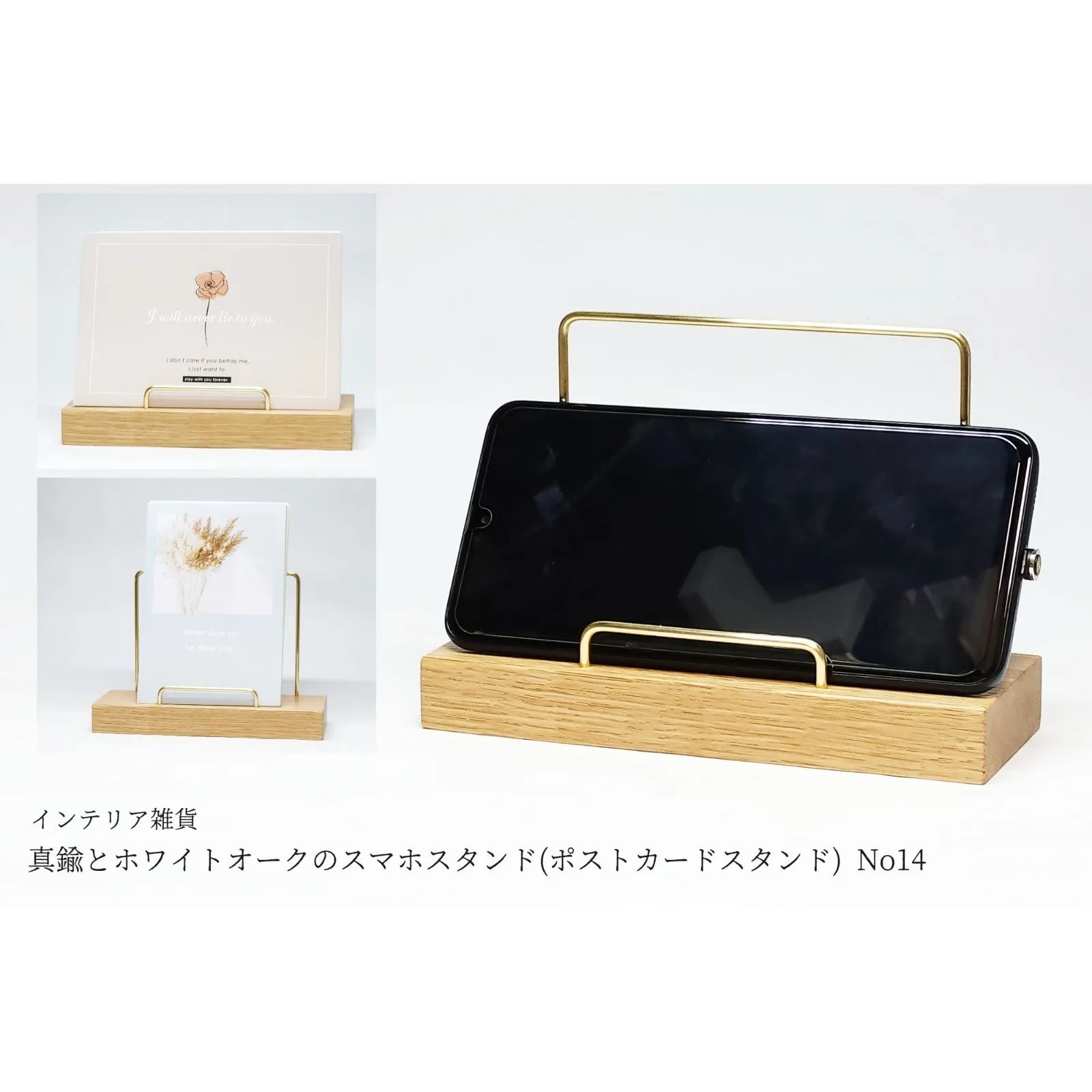 真鍮とホワイトオークのスマホスタンド(ポストカードスタンド) No15