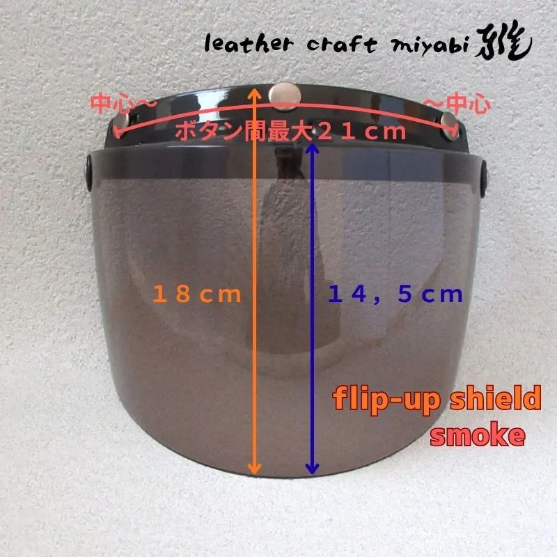 【フルフェイス装着テスト】 (ex-zero)装着できましたがメットに対してサイズが小くお勧めできません。 (mtx)ボタンの最大幅が不適合で装着不可。 *スタイル的にはマッチしているのでバイザー両サイドのボタンホールを少し加工すれば装着可能です。 *下記ボタン幅の実寸をご参照ください。 《カラー》クリア *UVカット 《サイズ》全体タテ18cm シールド14,5cm ヨコ20cm 《ボタン》3点留