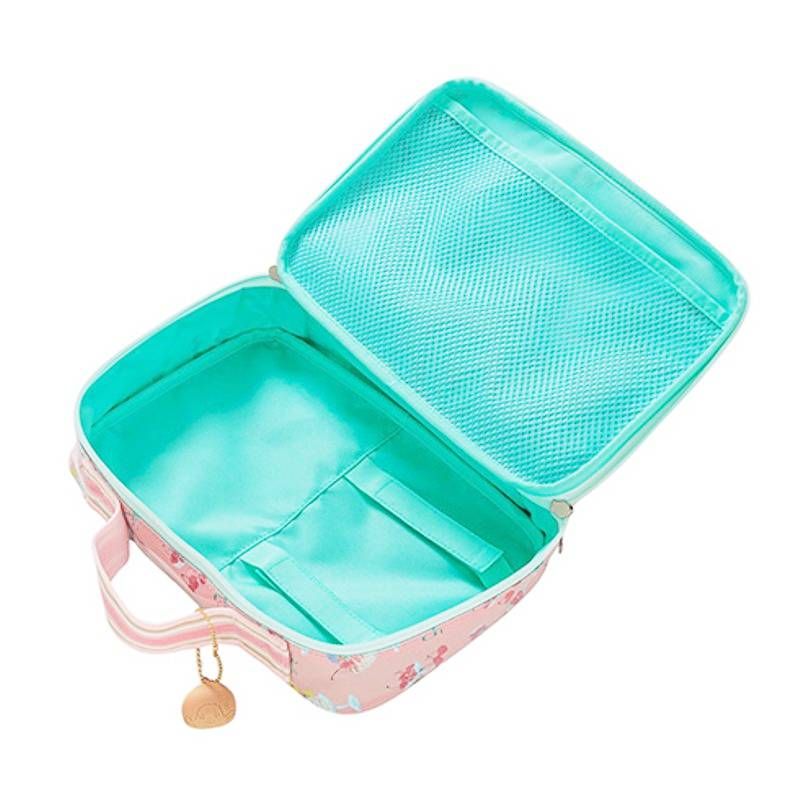 【モンチッチコラボ】 ♪おむつポーチとしてもおススメのマザーズポーチにハート型スパンコール入りのバブルガムピンクモンチッチ柄が仲間入り メッシュの内ポケットやマジックテープ付きバンドがついて中身がスッキリ収納できます 表面はビニールで水や汚れにも強く、旅行のコスメポーチとしても小物の収納ケースとしても最適! コラボ限定のモンチッチゴールドチャーム付きです♪