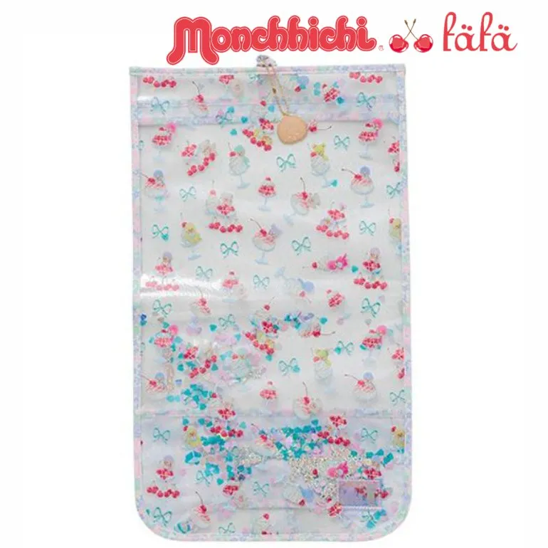 【モンチッチコラボ】 ♪人気のスパンコール入りのクリアタイプランドセルカバーにモンチッチが仲間入り 歩く度に揺れるスパンコールがチャームポイント fafaロゴはリフレクターインクを採用しているので夜でも安心 クリアなのでランドセルの本体色や柄を生かせ大切なランドセルをキズや汚れから守ってくれます モンチッチチャーム付きです♪