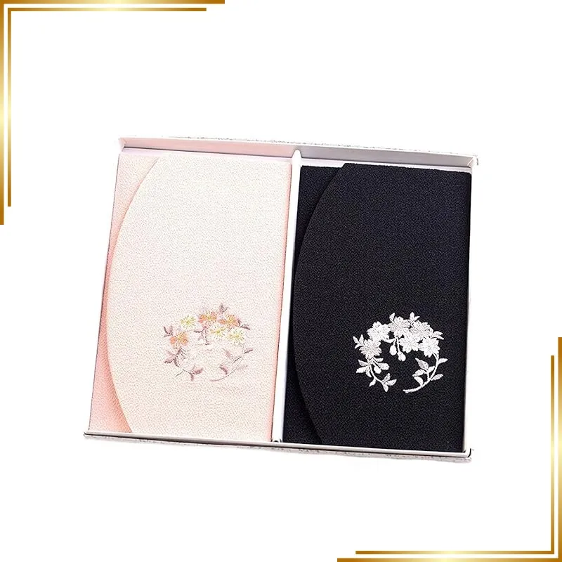 【新品】 ちりめん桜刺繍ふくさ 2枚セット 紙箱入 慶弔両用袱紗 結婚式 冠婚葬祭 男性用 女性用 日本製 (桜) 0