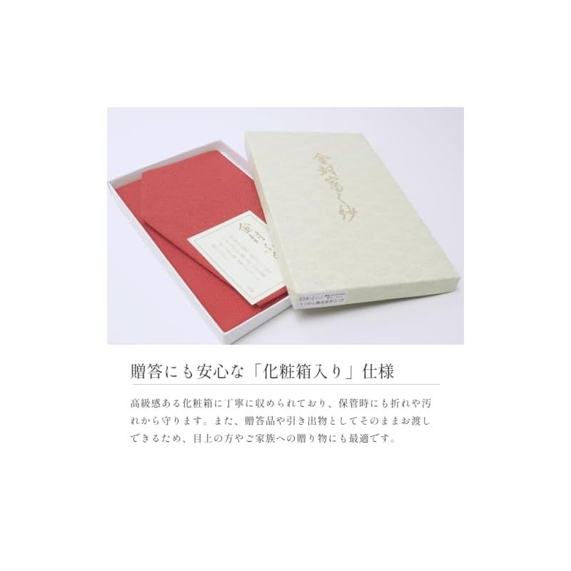【商品説明】 格式を大切にした場面にふさわしい、上品な袱紗(ふくさ)・金封袱紗です。 落ち着いたエンジ色と紫色の2色展開で、慶事・弔事どちらにも使用できる慶弔両用袱紗です。 生地には風合いのあるちりめん素材を使用し、やわらかく包み込むようにご祝儀袋や香典袋などの金封を保護します。 折れや汚れを防ぎ、冠婚葬祭の場で美しい所作を自然に演出します。 高級感のある化粧箱入りのため、保管時にも安心。 そのまま贈り物としてもお使いいただけ、引き出物や返礼品、贈答品にも適しています。 年齢や性別を問わず使いやすいシンプルで上質なデザインは、 結婚式、披露宴、ご祝儀、法要、お通夜、葬儀など、さまざまな冠婚葬祭のフォーマルシーンで活躍します。