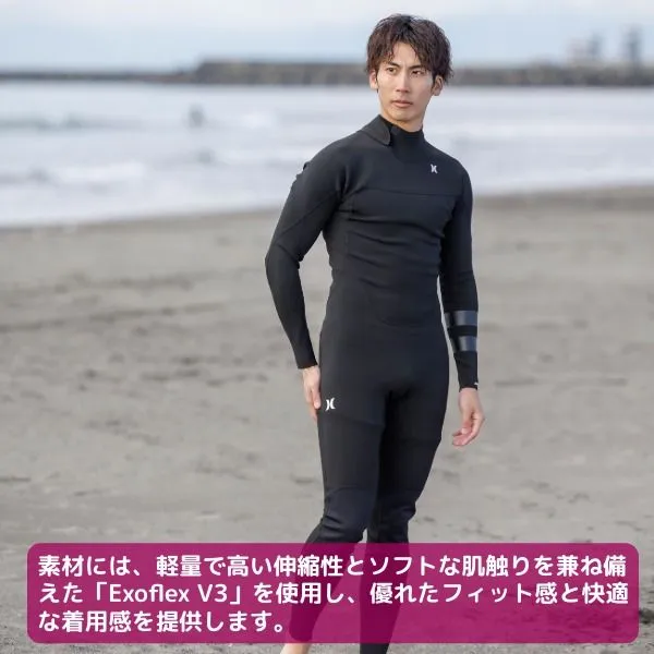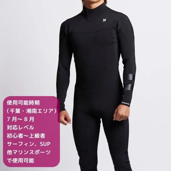 【HURLEY】ハーレーの1mmウェットスーツ。 初夏~真夏のサーフィンに最適な1mmフルスーツ。 軽量で柔らかい素材を使用し、ストレスのない動きやすさを実現します。 薄手ながらも適度な保温性を備え、肌寒い朝夕や風のあるコンディションでも快適にサーフィンが可能。 水の抵抗も少なく、パドリングやライディングのパフォーマンスをサポートします。 フルスーツタイプなので日焼け対策や擦れ防止、クラゲ対策にも効果的。 初夏から真夏、トリップまで幅広く活躍する1着です。 軽くて動きやすく、長時間のサーフィンでも快適に楽しめるウェットスーツです。 紫外線やクラゲ、擦り傷などから身体を保護する、オール1mm厚のフルスーツ。 素材には、軽量で高い伸縮性とソフトな肌触りを兼ね備えた「Exoflex V3」を使用し、優れたフィット感と快適な着用感を提供します。 エントリーシステムにはバックジップタイプを採用し、スムーズな着脱を実現。 夏のサーフィンをはじめ、さまざまなマリンアクティビティに最適なフルスーツです。 ・フラットロックシーム仕上げで耐久性を確保。 ・軽量で耐久性に優れたニーパッドを装備。 《商品詳細》