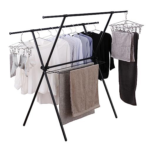 アイリスオーヤマ 伸縮自在で洗濯物の量で調節可能なコンパクト洗濯物干し 布団も干せる頑丈設計 約5人用 幅約92~152×奥行約64×高さ約127.5 ブラック STMX-920