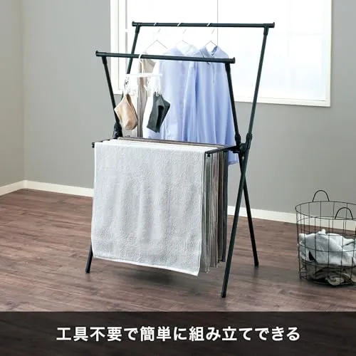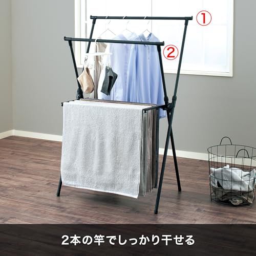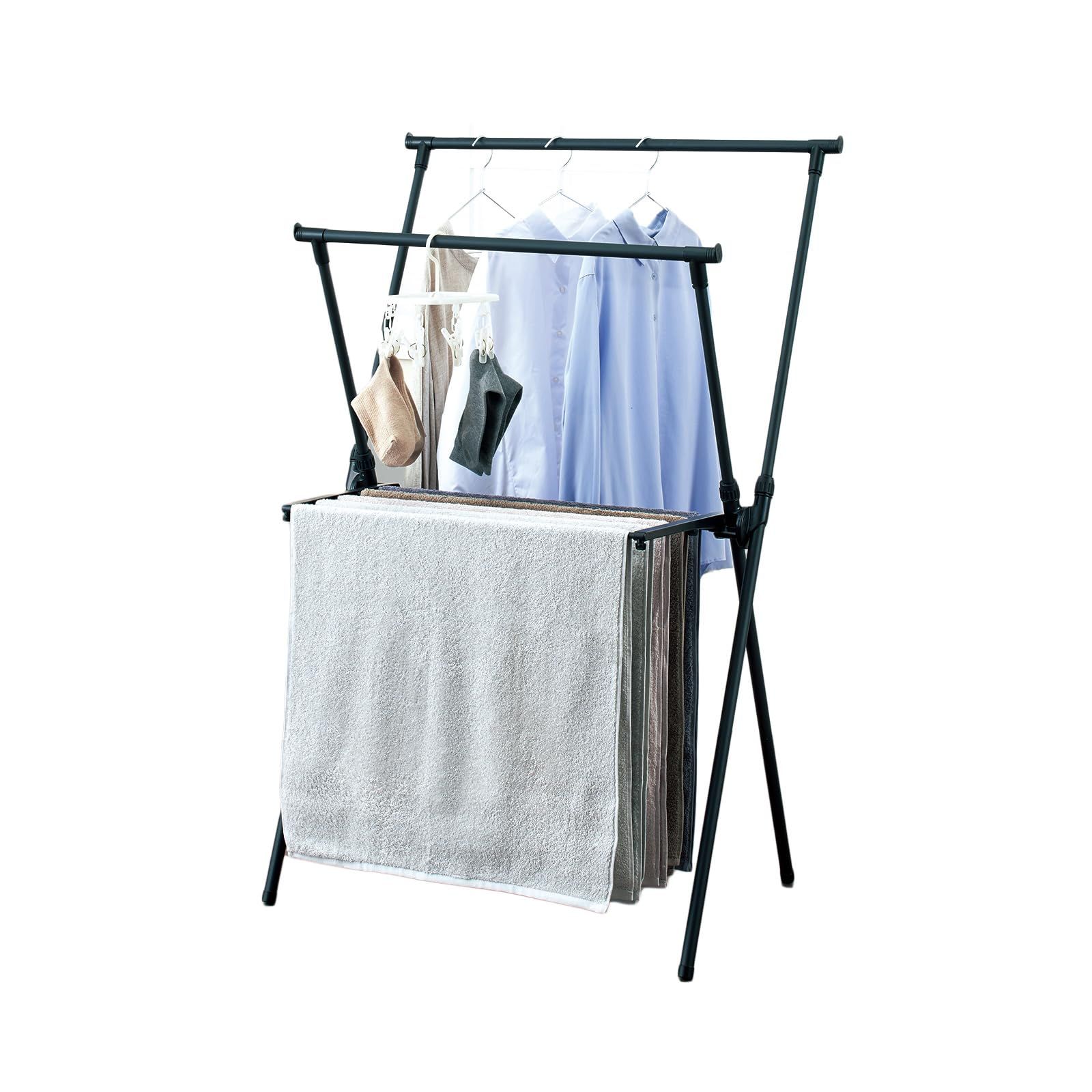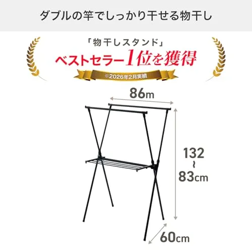 天馬 洗濯物干し 室内 ブラック物干し X型 簡単組立 コンパクトに収納可 高さ調整ができる マット調 おしゃれ 【サイズ 幅86×奥行60×高さ83-132cm】【PSBK-04】