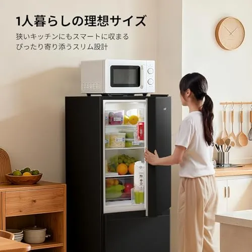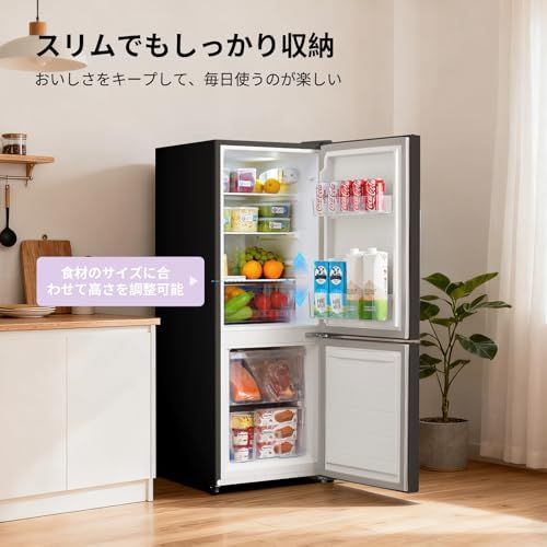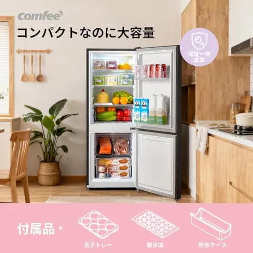 COMFEE' 冷蔵庫 136L 幅47cm スリム 省スペース 大容量 耐熱天板 静音 省エネ 一人暮らし ふたり暮らし用 右開き ブラック RCB139BL1JP(E)
