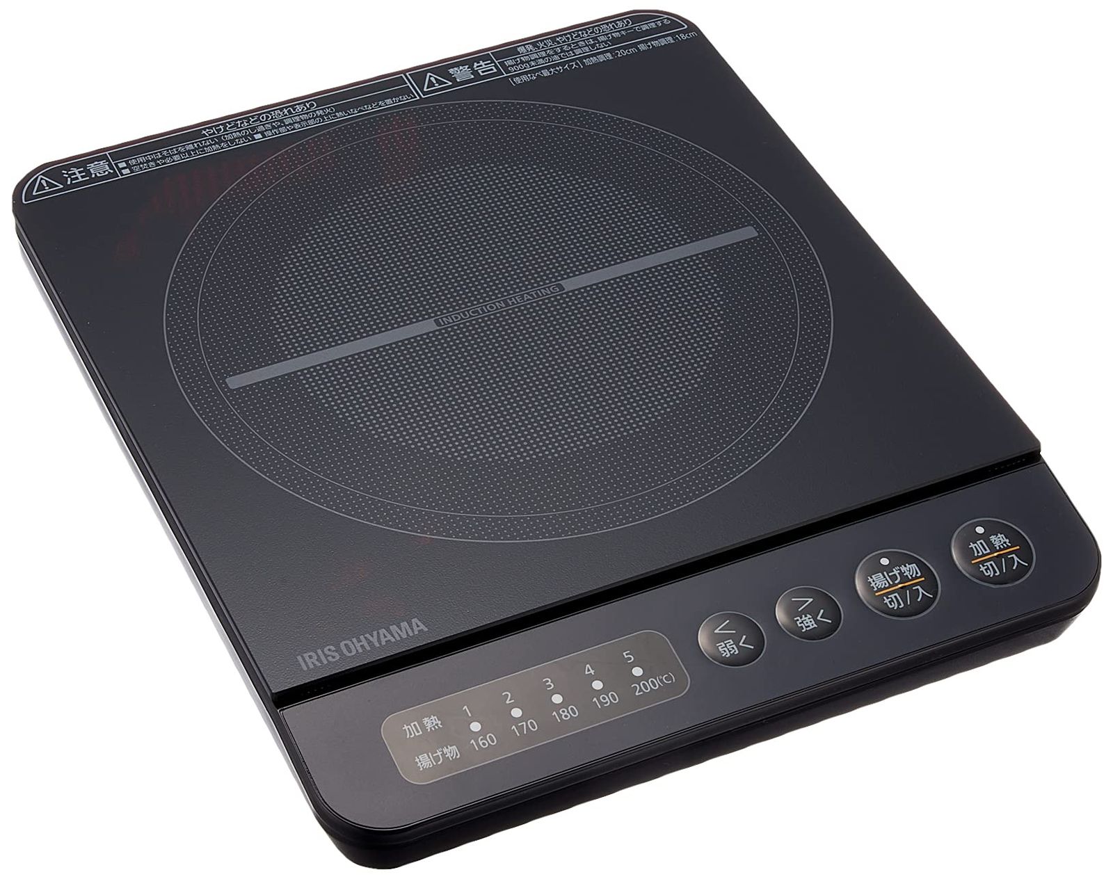 アイリスオーヤマ クッキングヒーター IHコンロ 1000W 卓上 小型 5段階火力調整 揚げ物 デザイン 簡単お手入れ 1口 IHクッキングヒーター 一人暮らし 二人暮らし 買い足し 家庭用 IHK-T38-B ブラック