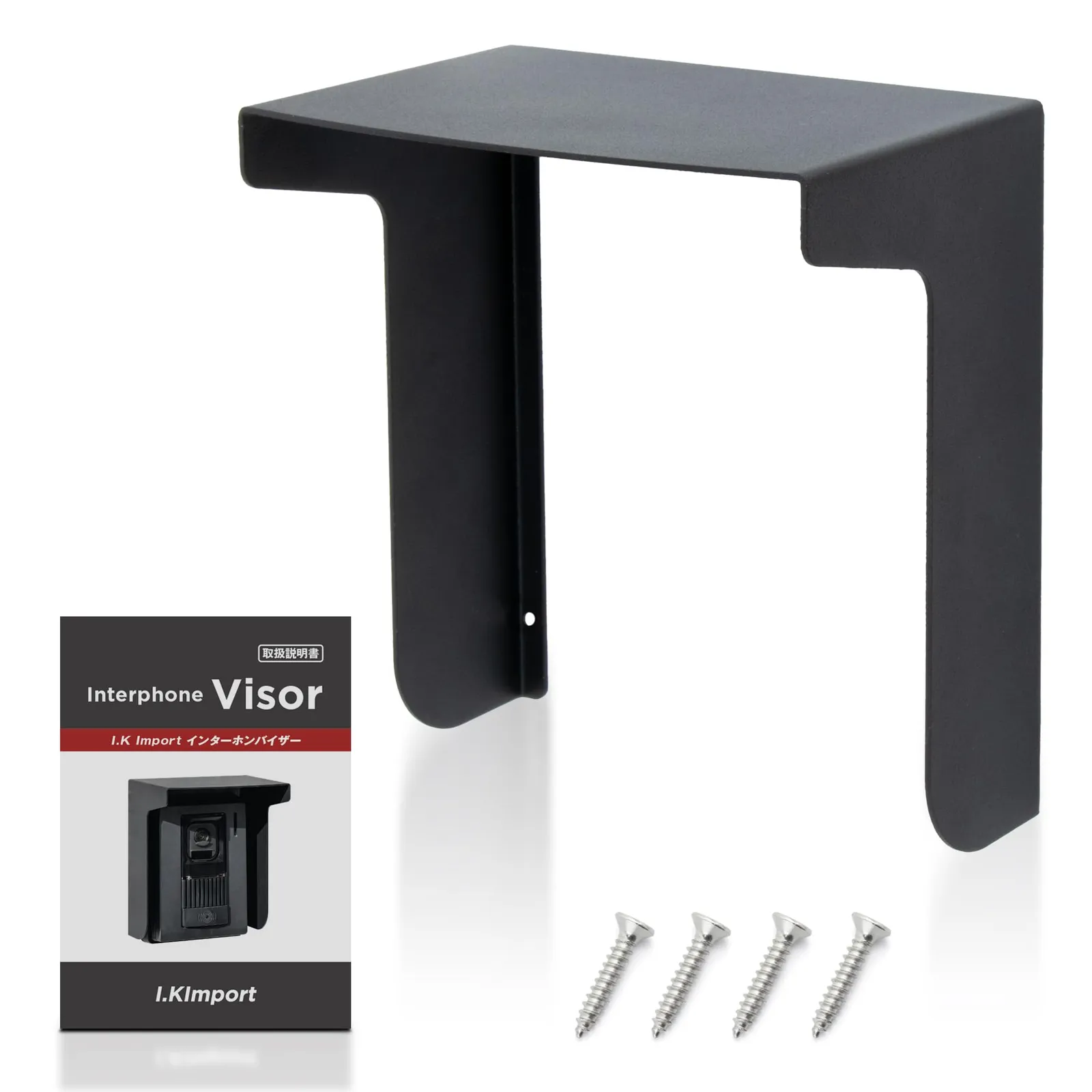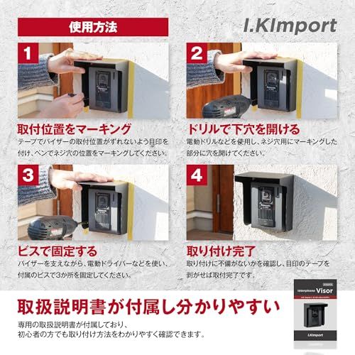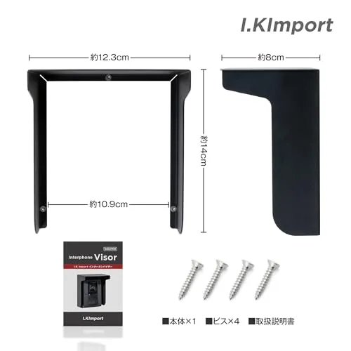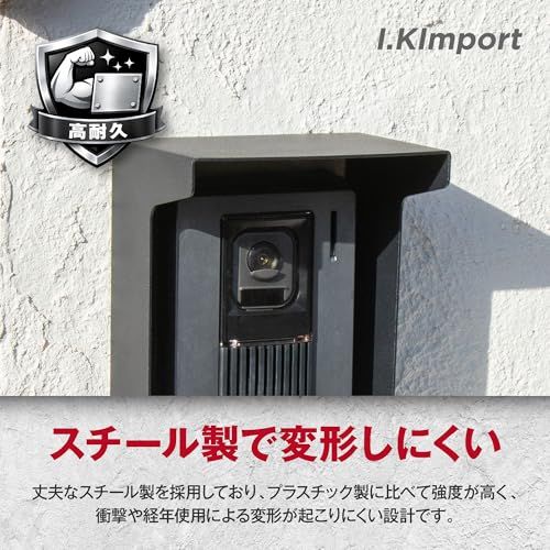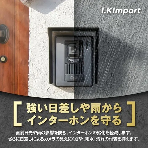 【I.Kimport】インターホン 玄関子機用 レインカバー|ワイヤレス ドアホン対応 サンバイザー型 防雨 金属製 簡単取付 ブラック