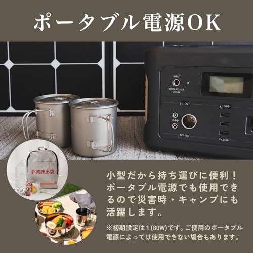 【安全機能】鍋検知、切り忘れ防止、電源コード抜き忘れなど6つの安全機能付きで家での使用はもちろん、キャンプや車内での使用も安心です。