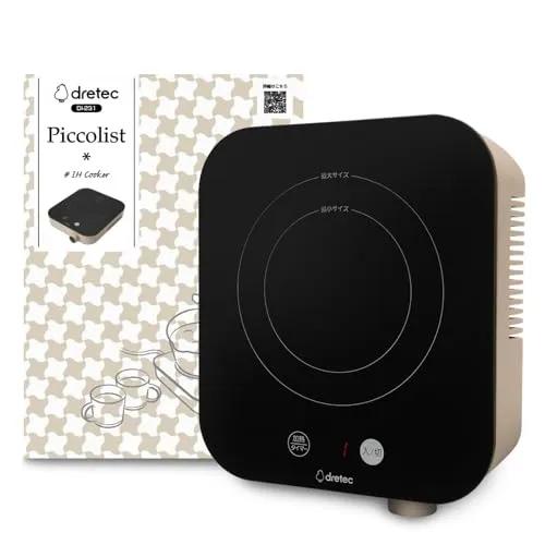 ドリテック(dretec) 一人用 IH クッキングヒーター 卓上 電気 小型 小さい タイマー付き 900W キャンプ用品 コンロ ヒーター コンパクト ポータブル おしゃれ ピッコリスト ベージュ
