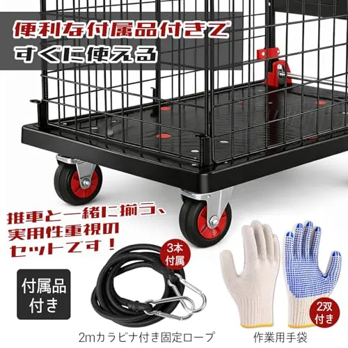 【防散乱ネット3本滑り止め手袋2組付属】荷崩れ防止ネット3本付きで安全性向上。さらに滑り止め手袋2組を標準付属。届いてすぐ使える充実セット