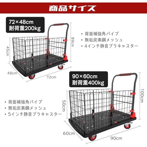 【カゴ寸法2タイプ 用途に合わせて最適選択】大型906050cmモデルと、小型724645cmモデルをご用意。積載量や使用環境に応じて選択可能。どちらも高耐久フレーム構造で長期使用に対応