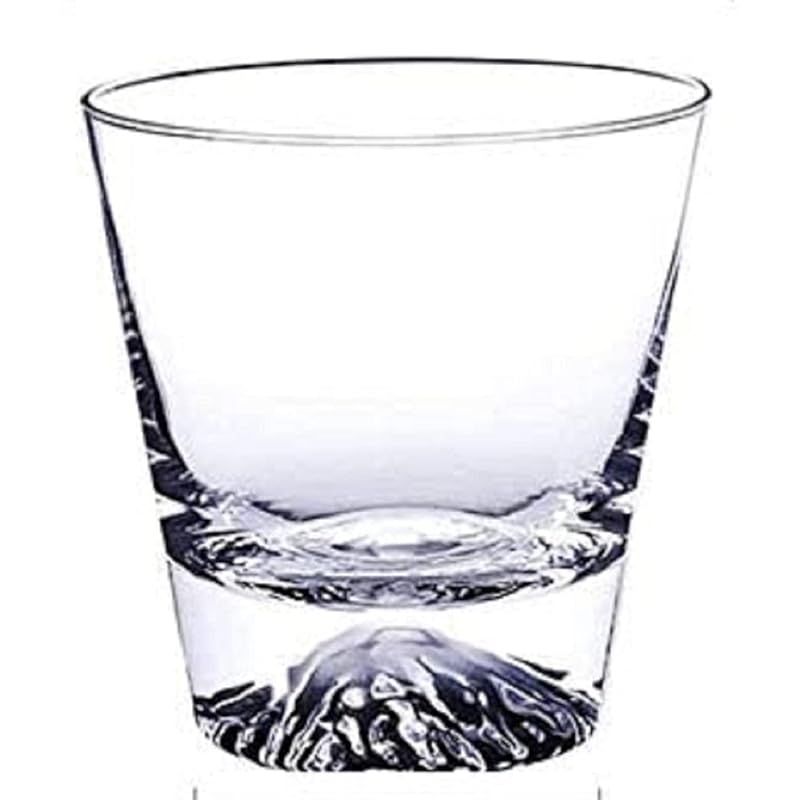【商品概要】 お洒落な富士山型のグラスです。 結婚祝いや記念日などの贈り物に♪ グラスの底にデザインされた富士山が、注ぐ飲み物の色によって様々に変化する様子が楽しいロックグラスです。 テーブルの上の富士山を楽しみましょう♪ サイズ:口径92mm×高さ95mm/箱:105mm×100mm×102mm/材質:無鉛ガラス
