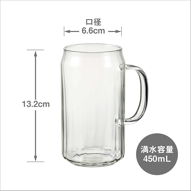 HARIO(ハリオ) 耐熱グラス カン 450mL ビール グラス ジョッキ 食洗機 電子レンジ 使用可 耐熱ガラス 日本製 HGK-450-M 0