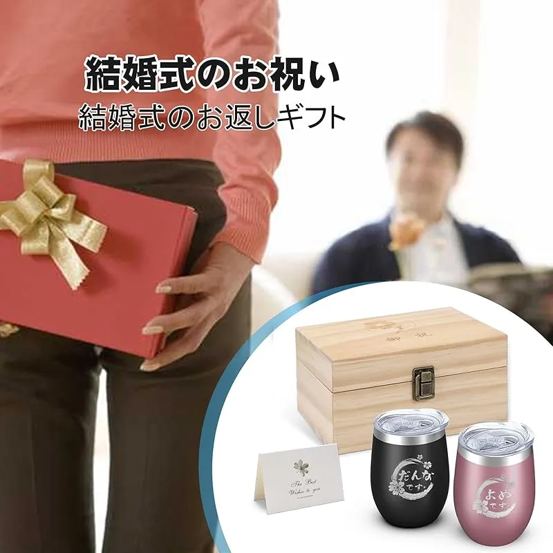 【商品説明】 結婚祝い 結婚記念日 お祝い 結婚 新婚 プレゼント 夫婦 ステンレス タンブラー ペア 蓋付き 真空断熱 保温 保冷 両親 夫へ 妻 プレゼント木箱パッケージ グリーディングカード。 ご注意:木箱は100%天然木材を使用しているため、表面の風合いや色、表面の刻印したロゴの色など一つ一つが異なります。そして、パイン材のため、端に細かい穴がありますが不良品ではありません。予めご了承ください。