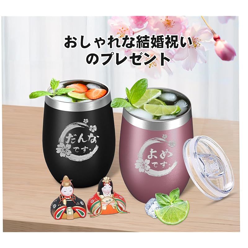 【商品概要】 結婚祝い、雲のようなストリーマーのようなニュージーランド産のパイン材を使用し、ハンドメイドの美しいギフトボックスに、繊細なプリントのステンレス製マグカップ2個をセットしております。白いラフィアで飾られ、手書きの挨拶が書かれた美しいグリーティングカードが付属しているので、おしゃれな結婚祝いとして贈ることができます。彼らに祝福を送ってください。 木箱には、ニュージーランド産のパイン無垢材を使用、自然で美しい木目が楽しめます。 一般的な貼り合わせ材ではなく、無垢材を一体構造で組み立てているため、強度が高く、見た目も上質です、長く大切に保管できます、ギフトにも安心してお使いいただけます。 ご注意:木箱は100%天然木材を使用しているため、表面の風合いや色、表面の刻印したロゴの色など一つ一つが異なります。予めご了承ください。 ブラック、レッド のカップルタンブラーペア、日本の定番デザイン「だんな です。」と「よめ です。」をカップ本体に取り入れ、シックなデザインと美しい意味は、贈り物としても適しています。カップルでお酒を飲みながら記念日をお祝いしたり、普段使いのコーヒーや水割りのマグカップとしてもお使いいただけます。 結婚記念日 プレゼント、これはロマンチックな結婚式を目撃する質の高いプレゼントです。このタンブラーペアは、結婚祝いにはもちろん、結婚記念日には妻や夫へのプレゼントにもぴったりです。 完璧なギフトセット、それを結婚式、婚約、バレンタインデー、結婚記念日の時に贈る貴重なプレゼントとして、体裁が良くて、センスがあって、特別な記念の意味を持っています。また、ペアグラスとして、引越し祝い、新居祝い、新築祝いなどのギフトにも最適で、新しい生活のスタートを祝う贈り物としても喜ばれます。 注意事項: 製品の紙製の外箱は保護用でギフトボックスではありません。木箱をギフトボックスとして贈るか、ギフトボックスを購入することを選択できます。 多くの製品が内側のみ304ステンレス鋼を採用しているのに対し、当商品は内側・外側の両方に食品グレード18/8(304)ステンレス鋼を使用、さらに内胆には銅メッキ層を加えることで。二重真空断熱構造、手のやけど防止、結露防止機能、保温・保冷性能を約10~20%向上※させています。