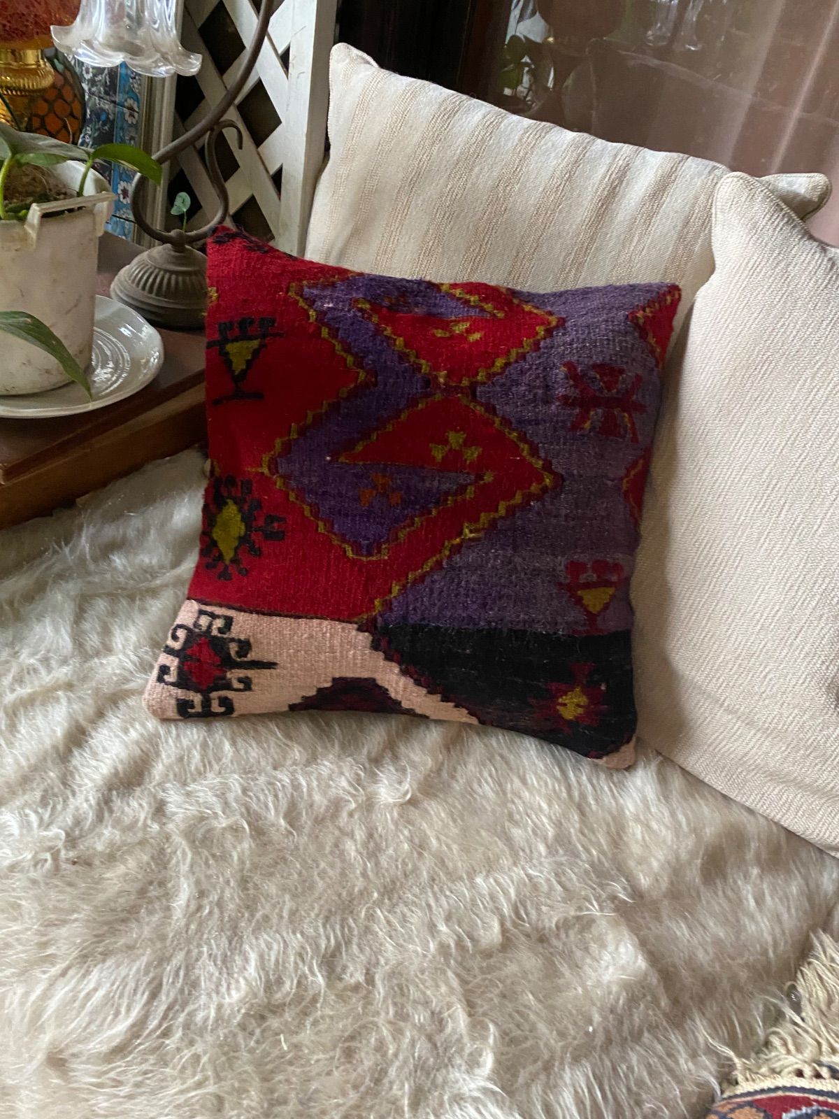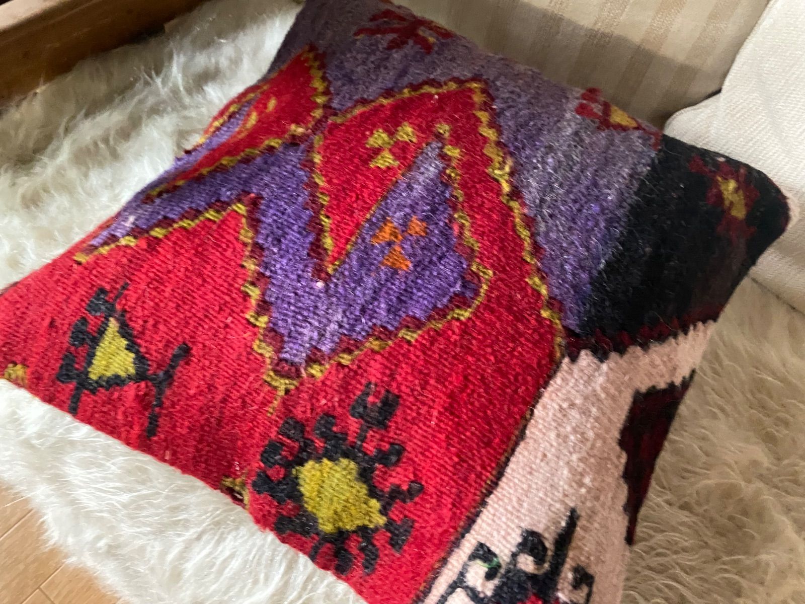 キリム初 めての方もこのクッションカバーを手に入れれば絶対にキリムがお好きになるは ず!まずはだまされたと思ってご入札ください!!クッション1枚から始まるキリ ムの世界です!!ぜひ現地よりいいものを手に入れてください!