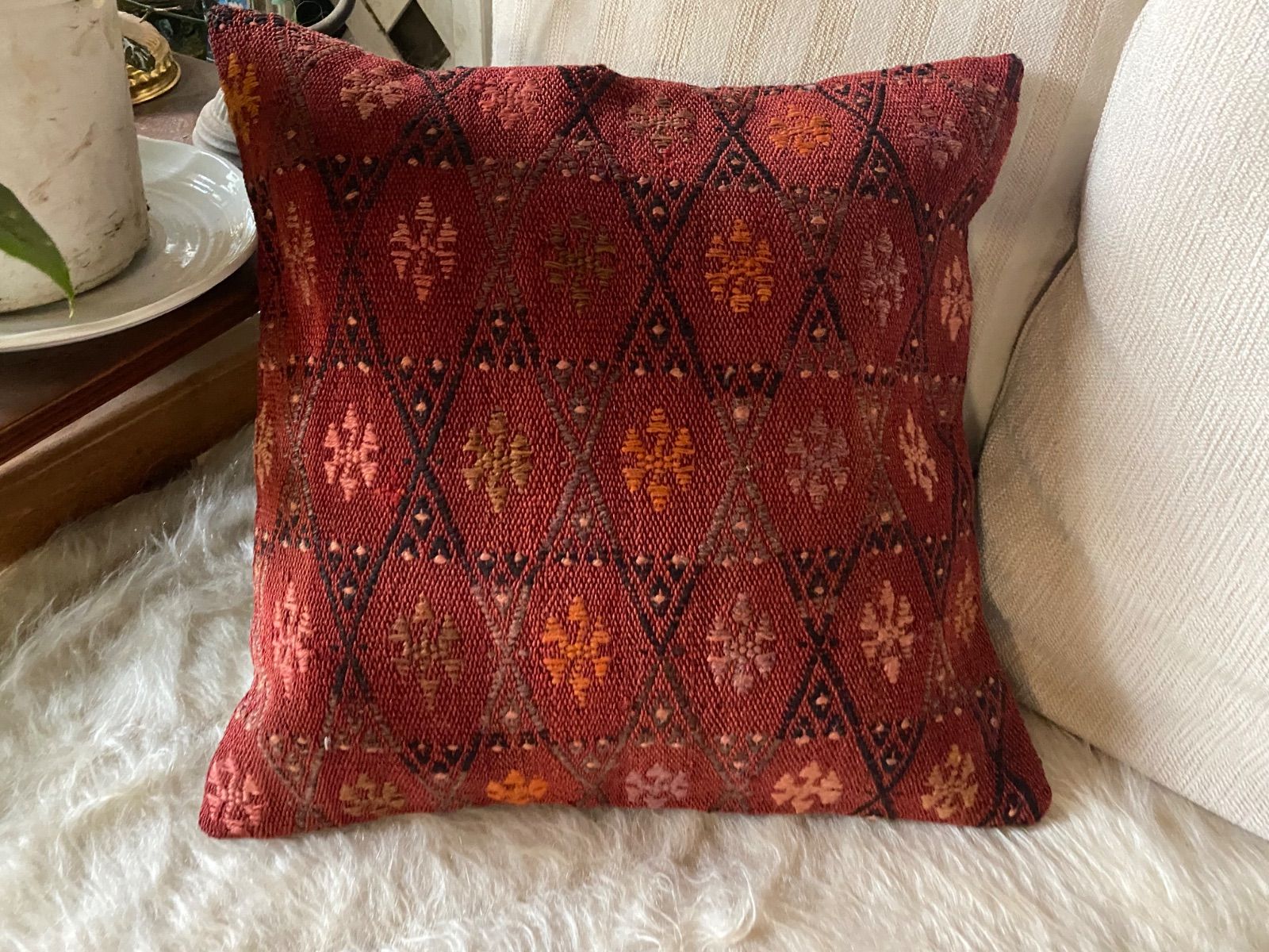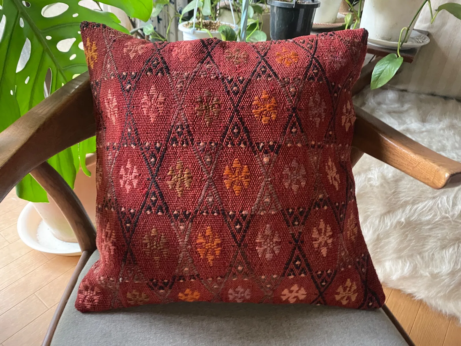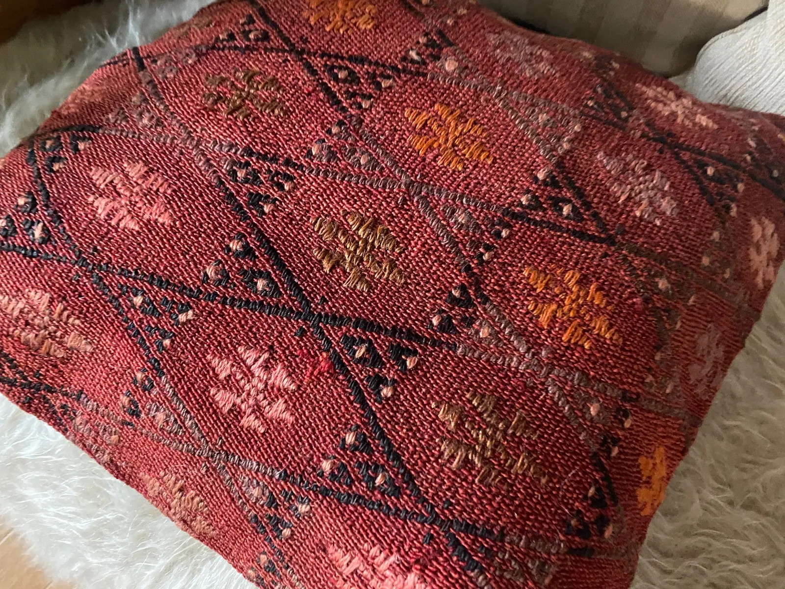 細かいジジム刺繍がとびきり素敵なトルコシヴァスのキリムクッションカバー!色々なカバーを並べても素敵です!キリムのある素敵な暮らしをご提案