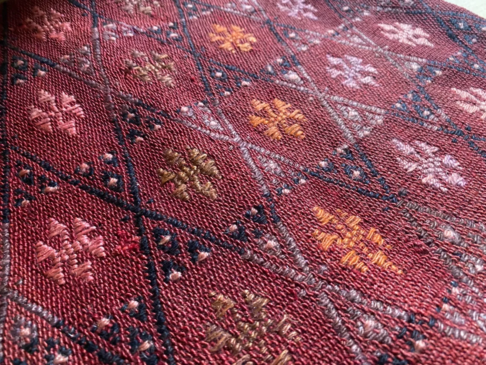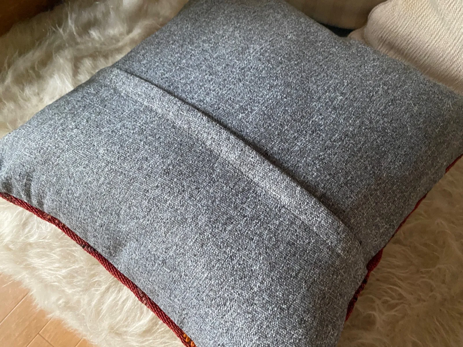 オールドキリム~アンティークキリムから作ったカバーには多少の色染みや、修理跡のあるもの、セミアンティークなどは縦糸 が見えているものもございます。