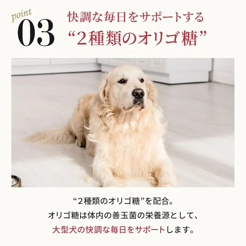 【快調な毎日をサポートする”グルコサミン”・”コンドロイチン”】いつまでも元気に、負担を感じることなく過ごしてほしいから。体の大きな愛犬にうれしい2種類の健康維持成分、グルコサミン・コンドロイチンを配合しました。 ?