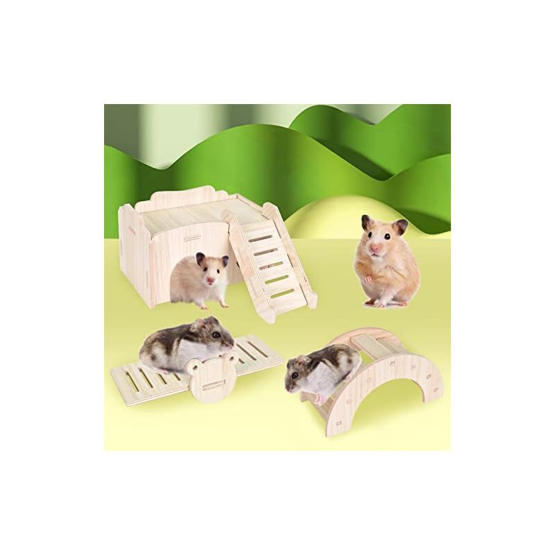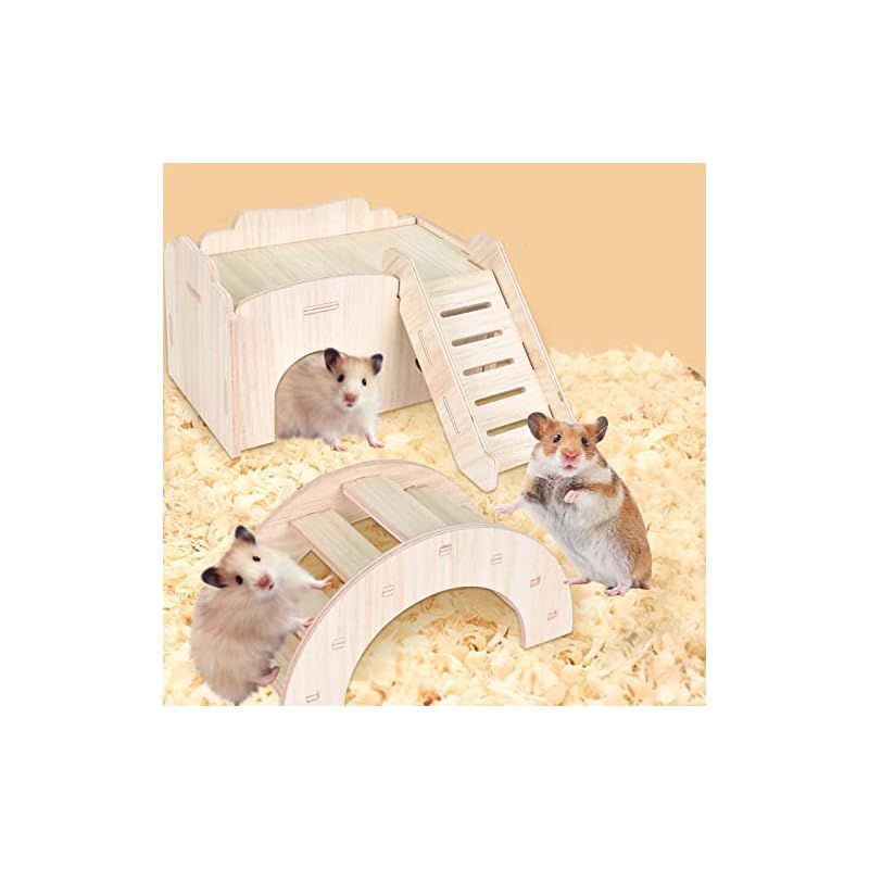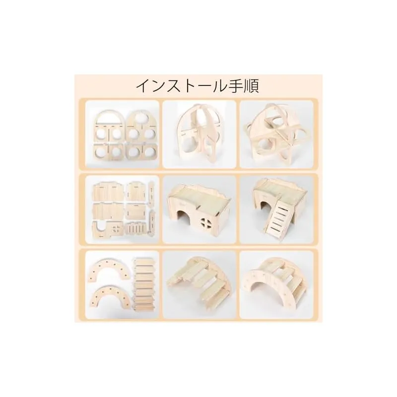 【高品質の材料】このハムスターのおもちゃセットは純粋な天然木材で作られており、乾燥しており、安全で環境に優しい、無臭で、健康で耐久性のある防水コーティングが施されています。 ペットのために安全で快適な家を作りましょう。 ?