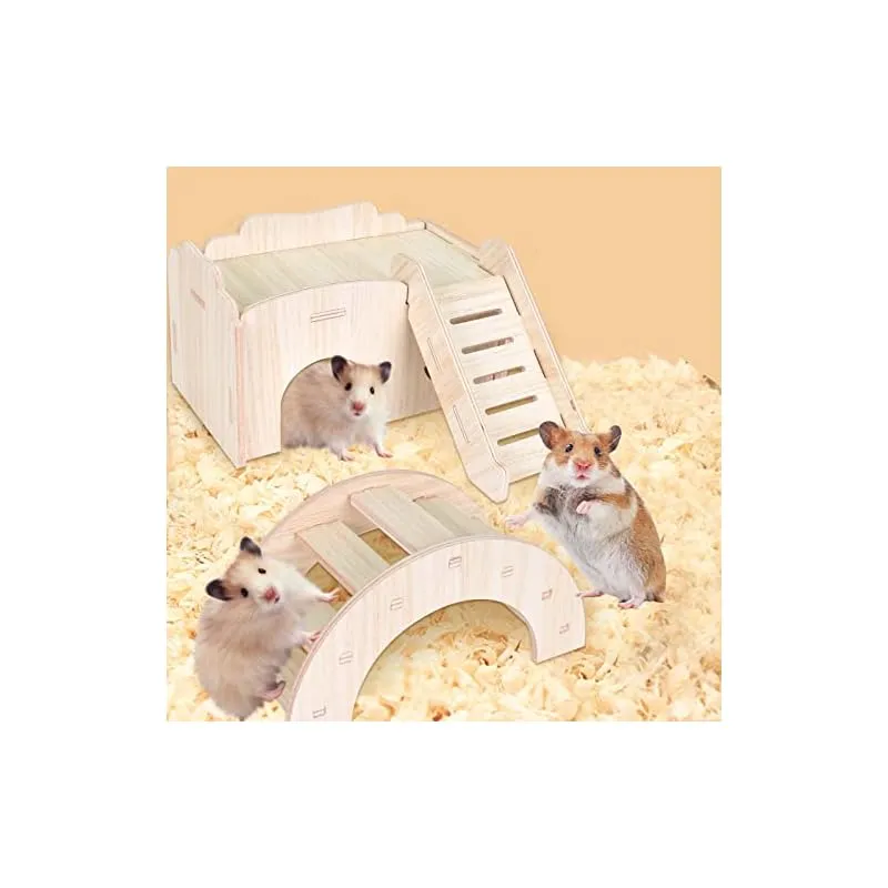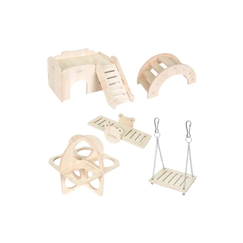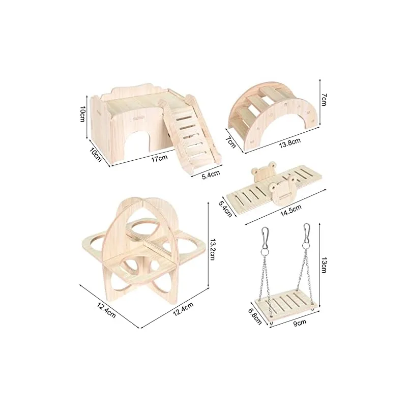 5点ハムスター ハウス おもちゃ 階建て 木製 ペットの住宅 ハムスターの家 小屋 遊び場 ペット 遊び道具 運動不足解消 飼育ケージ ペット用品 動物小屋 住宅 小動物 遊び場 贈り物