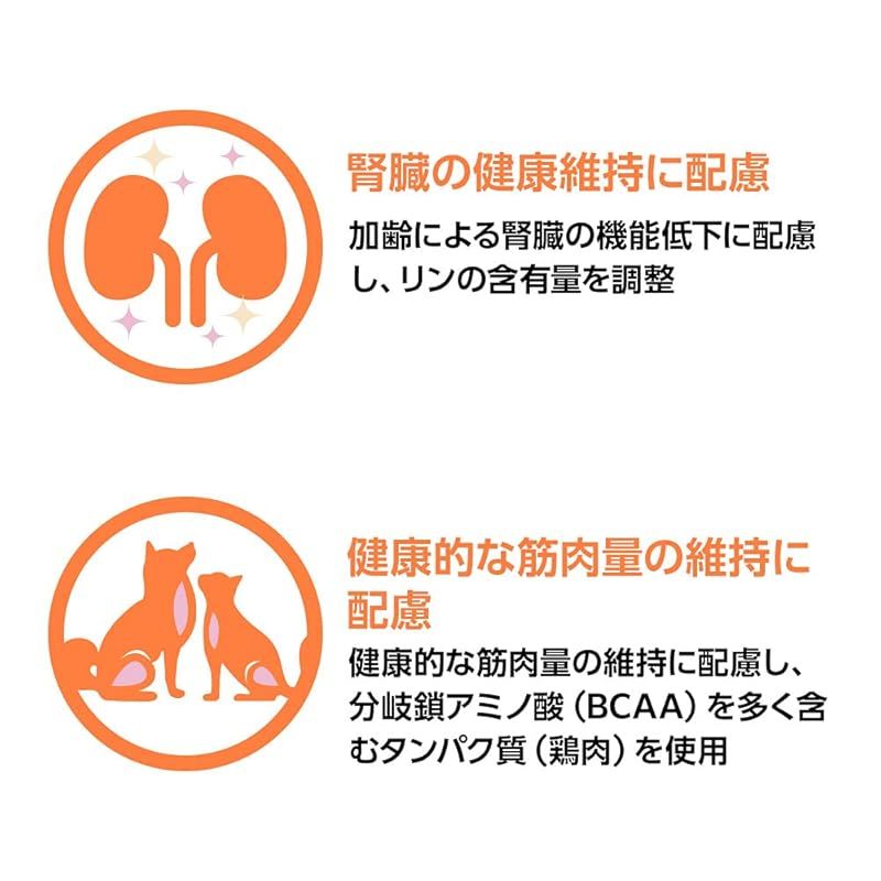 ◆ 加齢による腎臓の機能低下に配慮し、リン※1の含有量を調整しています。 ※1標準的な自社成猫用フードと比較し、約8%減