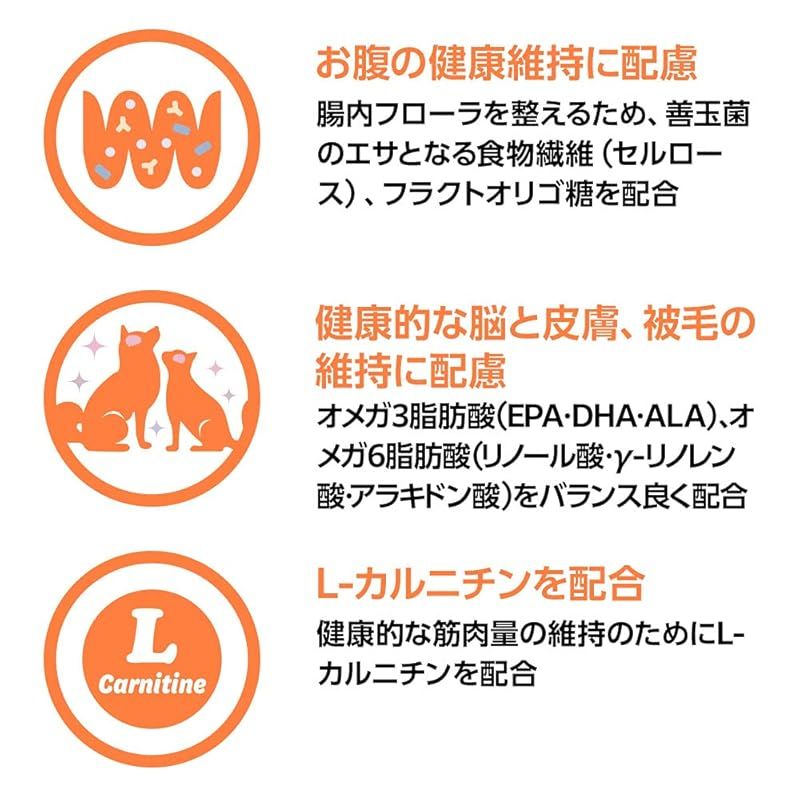 ◆ 健康的な関節を維持するために、グルコサミン、コンドロイチンを配合しています。また、健康的な筋肉量の維持に配慮し、分岐鎖アミノ酸(BCAA)を多く含むタンパク質(鶏肉)を使用しています。
