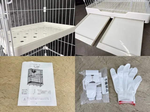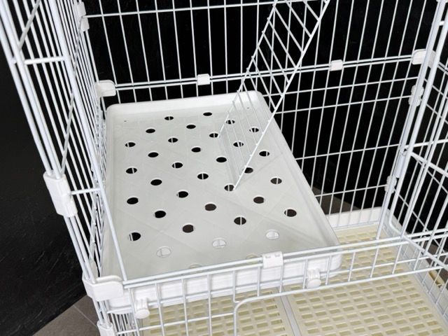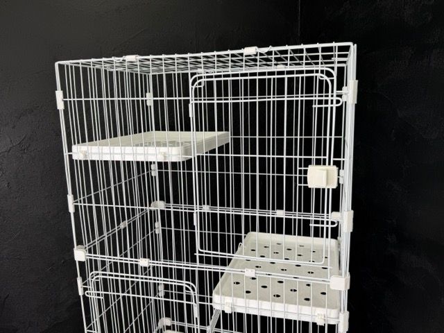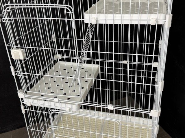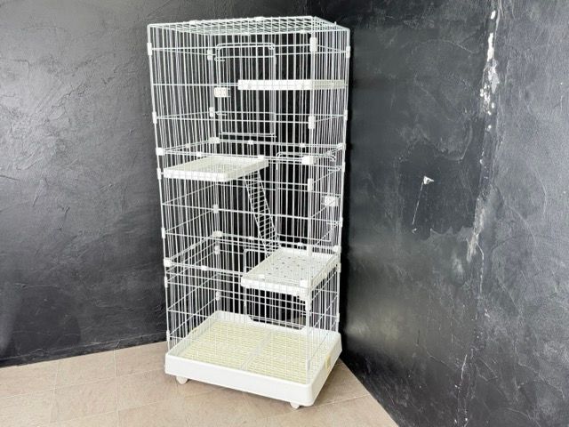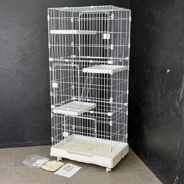 未使用品 ペットゲージ キャットゲージ C10080-23 ホワイト 屋根付き キャットタワー 3段 キャスター付き / 516605