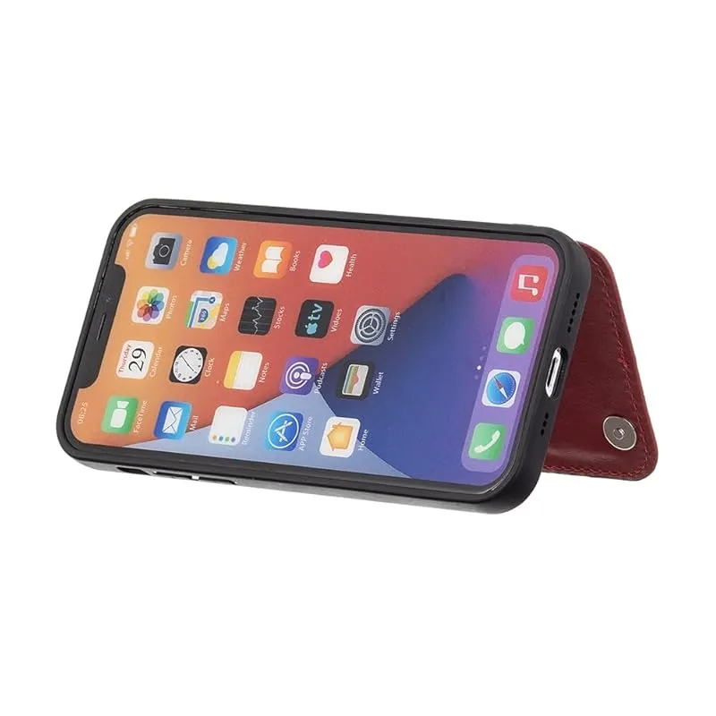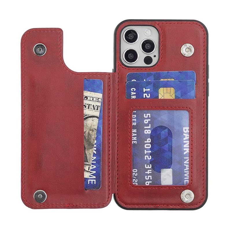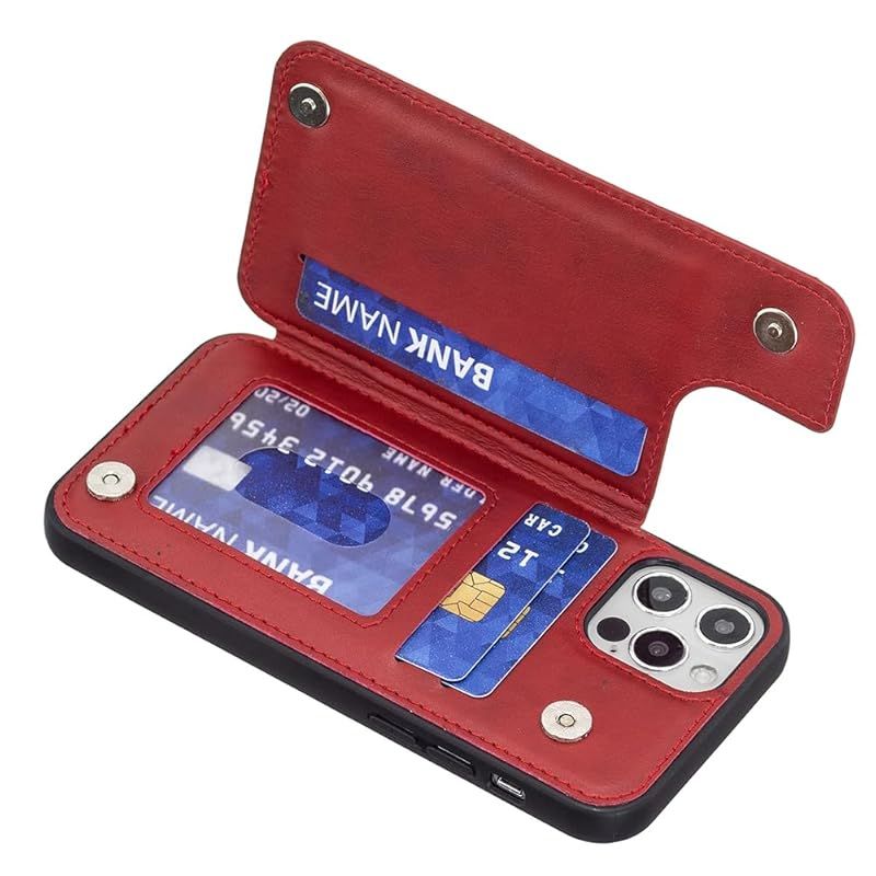 【新品】 for iPhone 13 mini ケース スタンド機能 ICカード収納 カード 背面カード 左と右の電話を反転、防水と防汚電話ホルダー、多機能財布収納付き、PUレザーケース、TPUソフトインナー (赤)