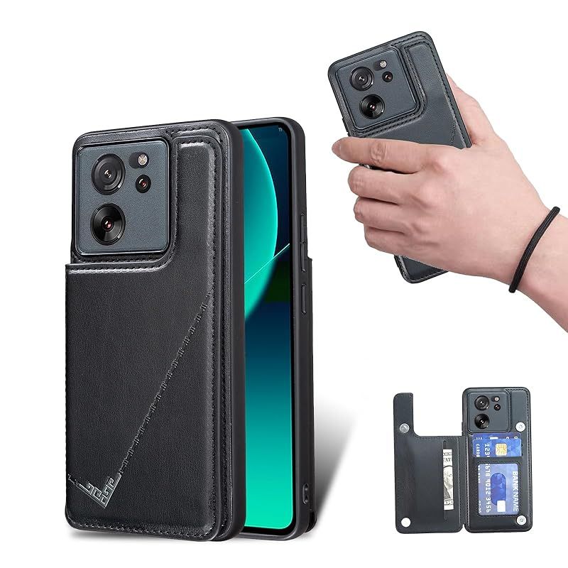 【新品】 for Xiaomi 13T / Xiaomi 13T Pro ケース スタンド機能 ケース ICカード収納 カード 背面カード収納 左と右の電話ケースを反転、シンプルなレトロなファッション、防水と防汚電話ホルダー、多機能財布収納付き、PUレザー、T 製造元:Gejintaohua 商品番号:vziwen1 商品内容:for Xiaomi 13T / Xiaomi 13T Pro 色:黒1