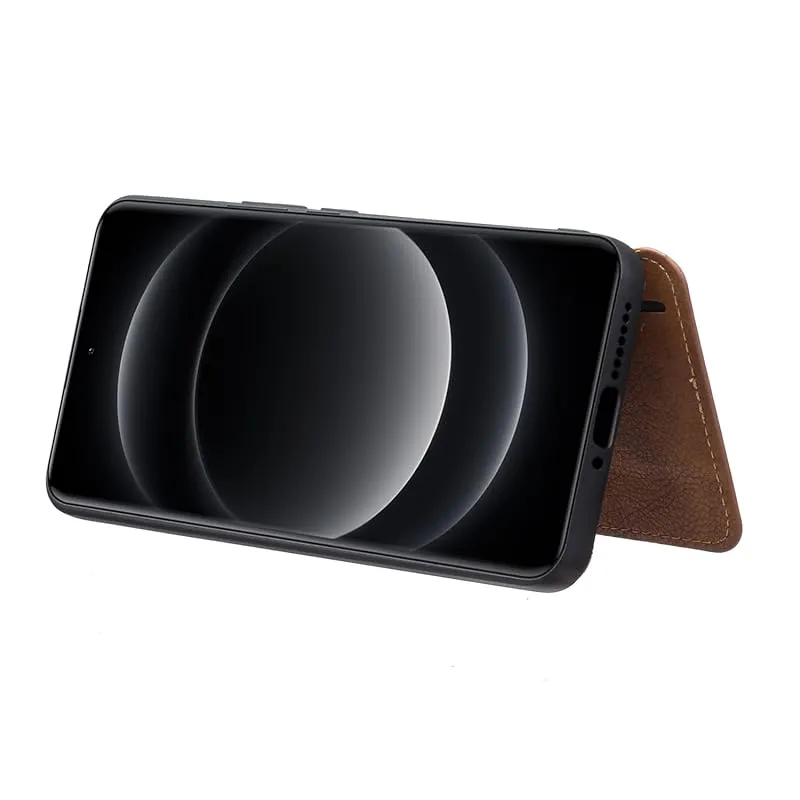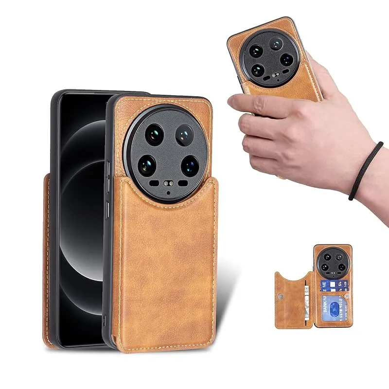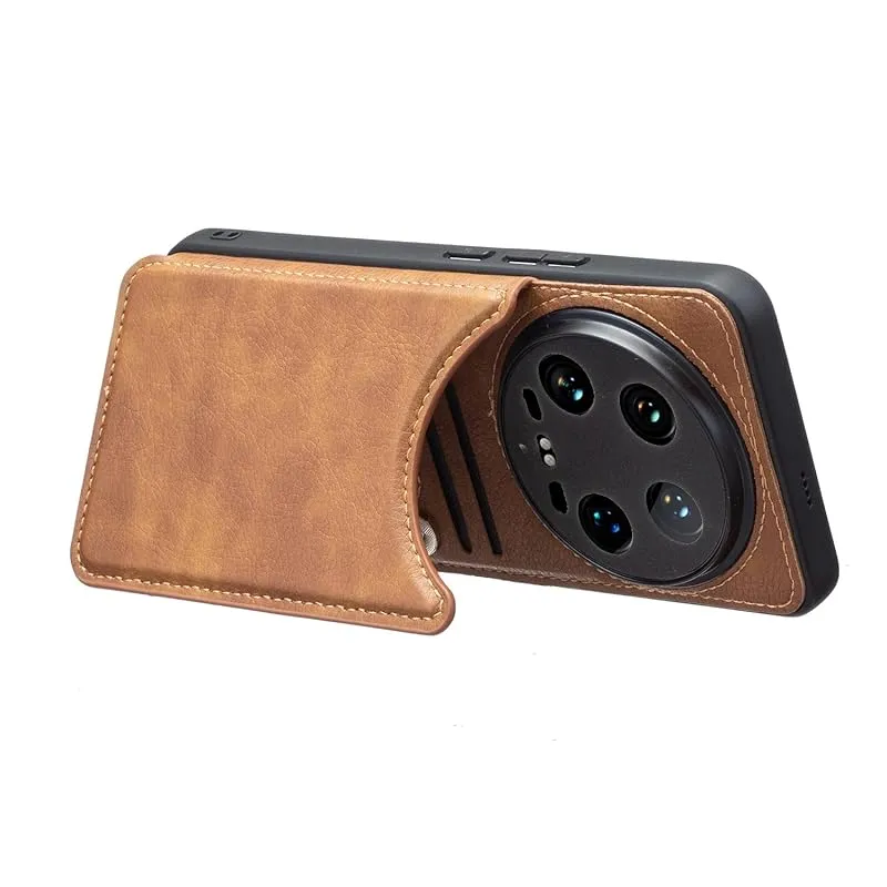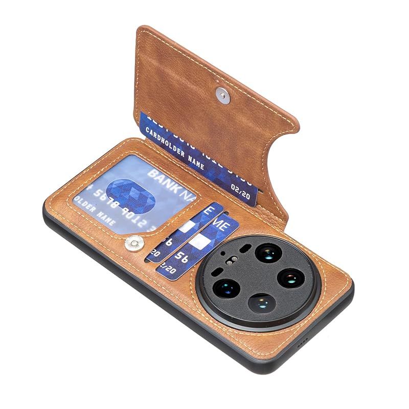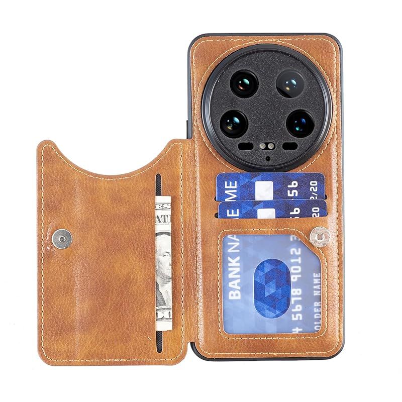 【新品】 for Xiaomi 14 Ultra ケース スタンド機能 ケース ICカード収納 カード 背面カード収納 左と右の電話ケースを反転、シンプルなレトロなファッション、防水と防汚電話ホルダー、多機能財布収納付き、PUレザー、TPUソフトインナー(ブラ