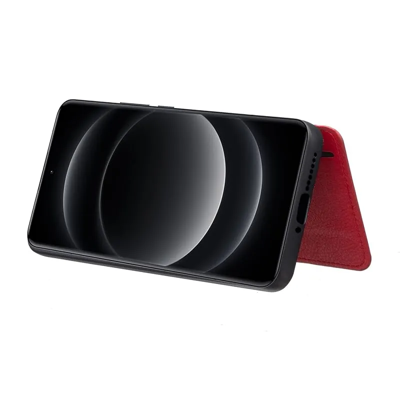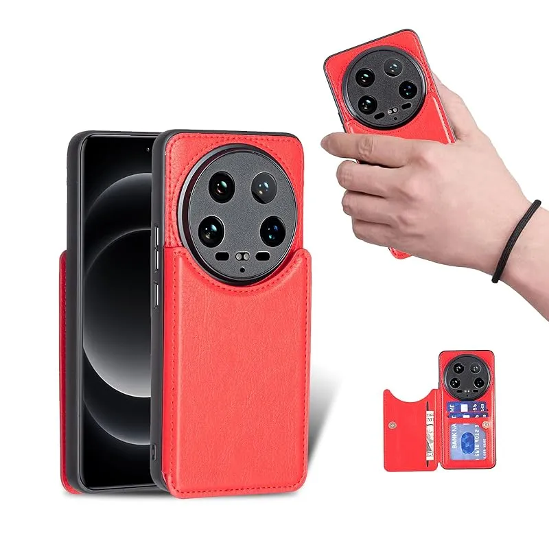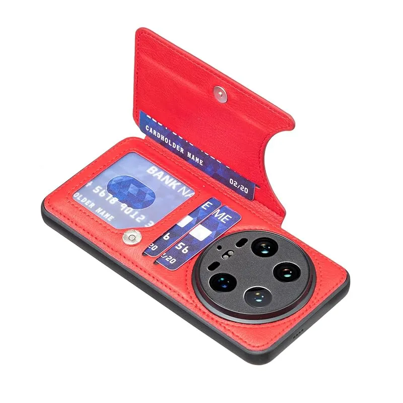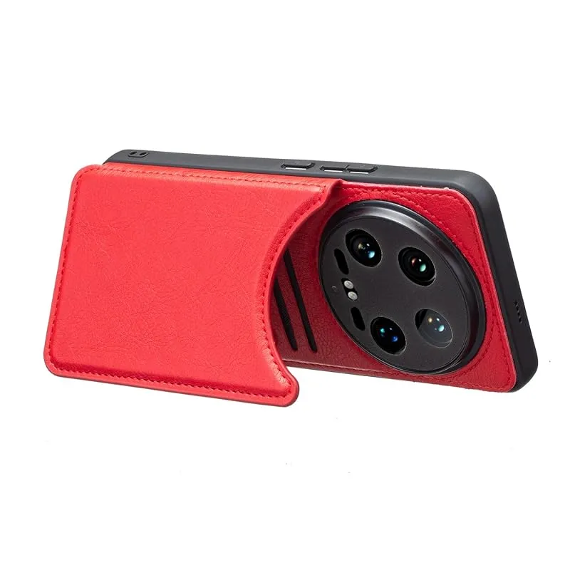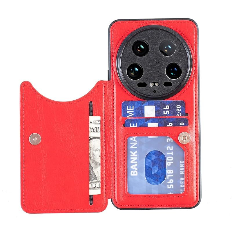 【新品】 for Xiaomi 14 Ultra ケース スタンド機能 ケース ICカード収納 カード 背面カード収納 左と右の電話ケースを反転、シンプルなレトロなファッション、防水と防汚電話ホルダー、多機能財布収納付き、PUレザー、TPUソフトインナー(赤)